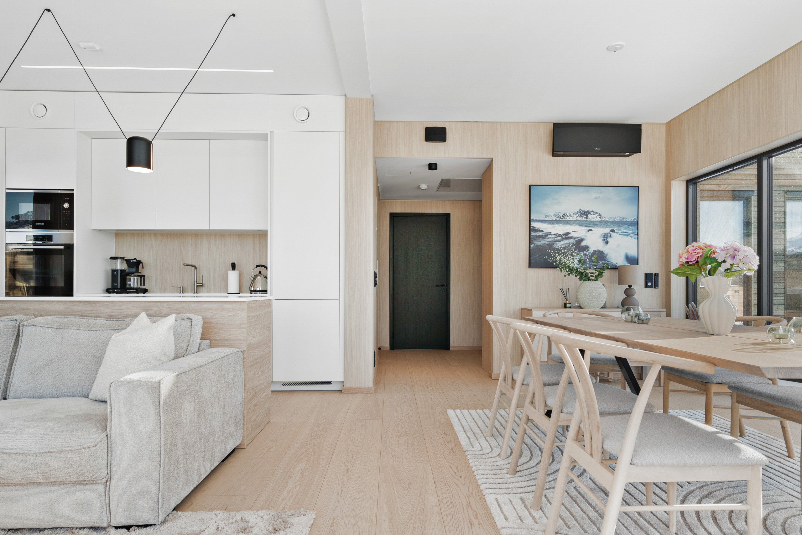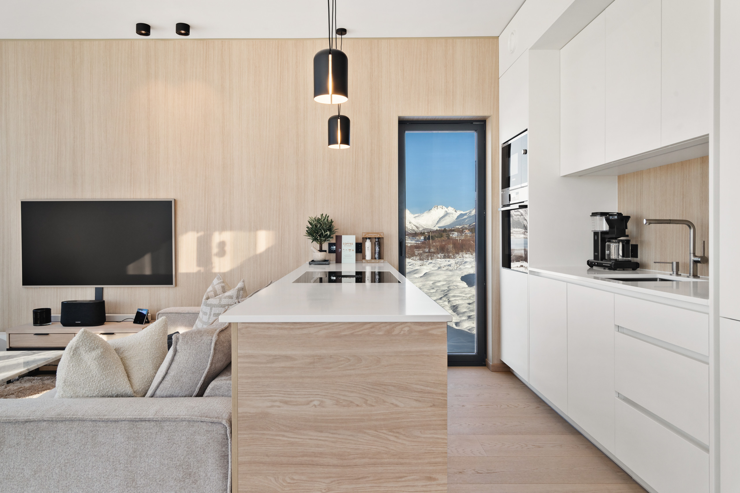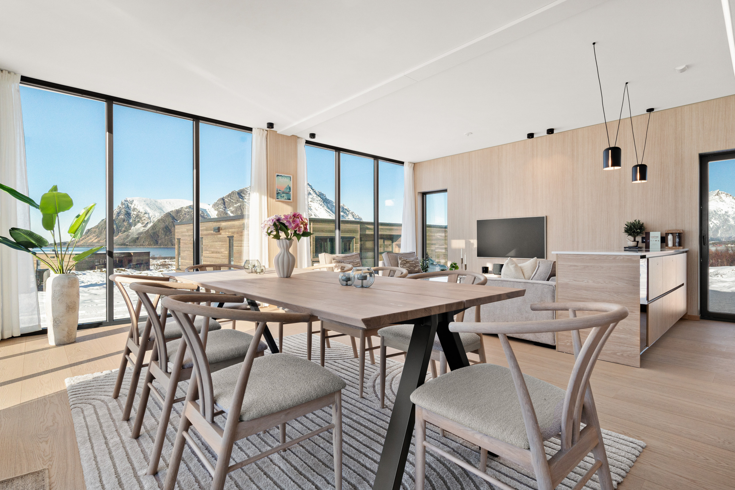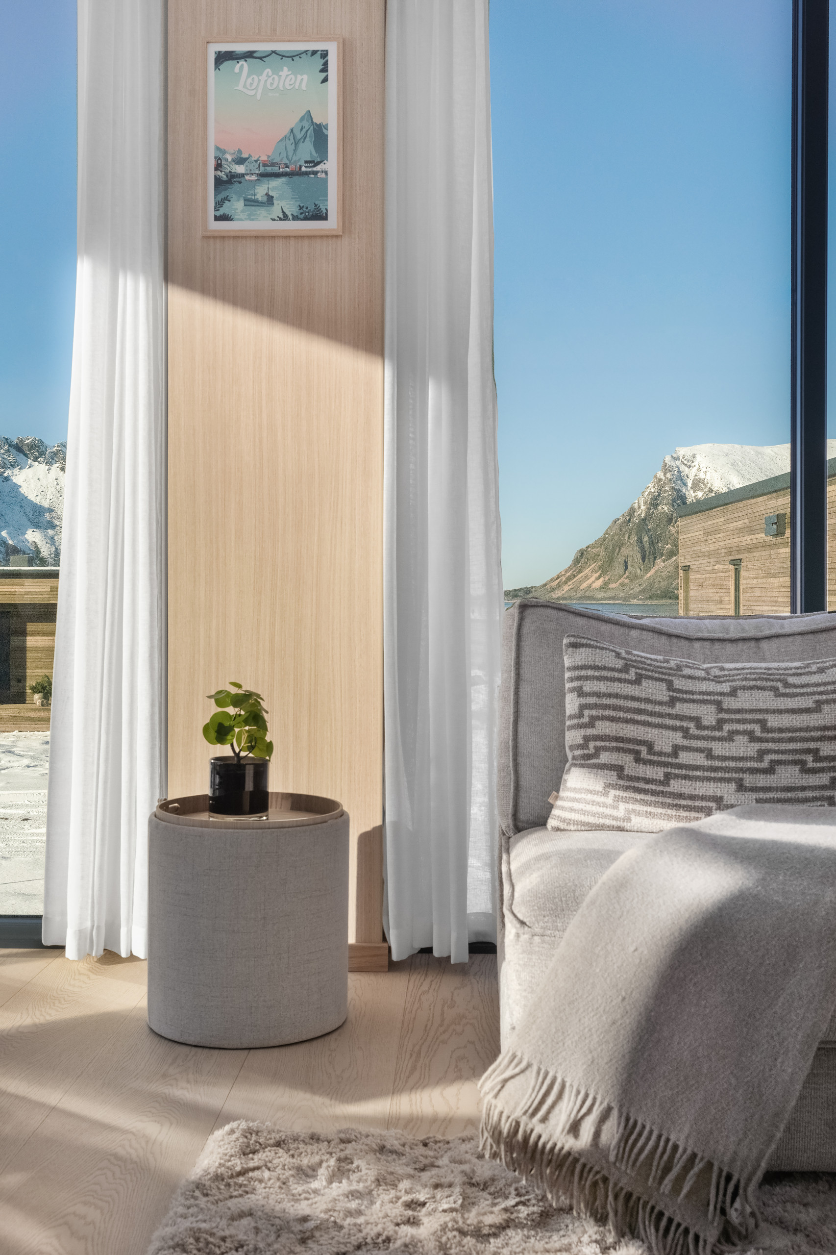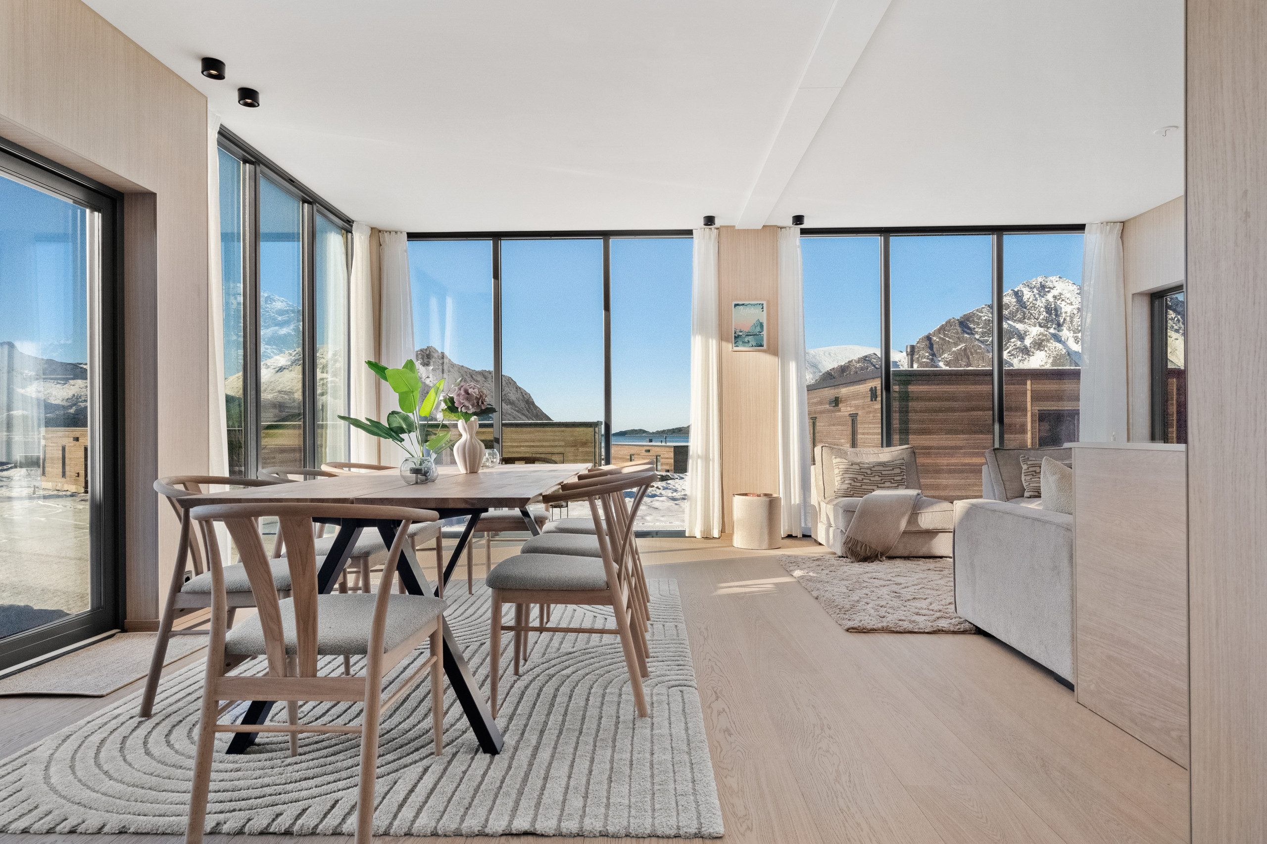 Spacious and thoughtfully designed with two bathrooms, both with big showers, it accommodates up to 8 guests and blends modern comfort with the raw beauty of Lofoten. Whether you’re chasing the Northern Lights, exploring fjords, playing a round of golf at Lofoten Links under the midnight sun, or simply unwinding in quiet comfort — this is your base for it all.