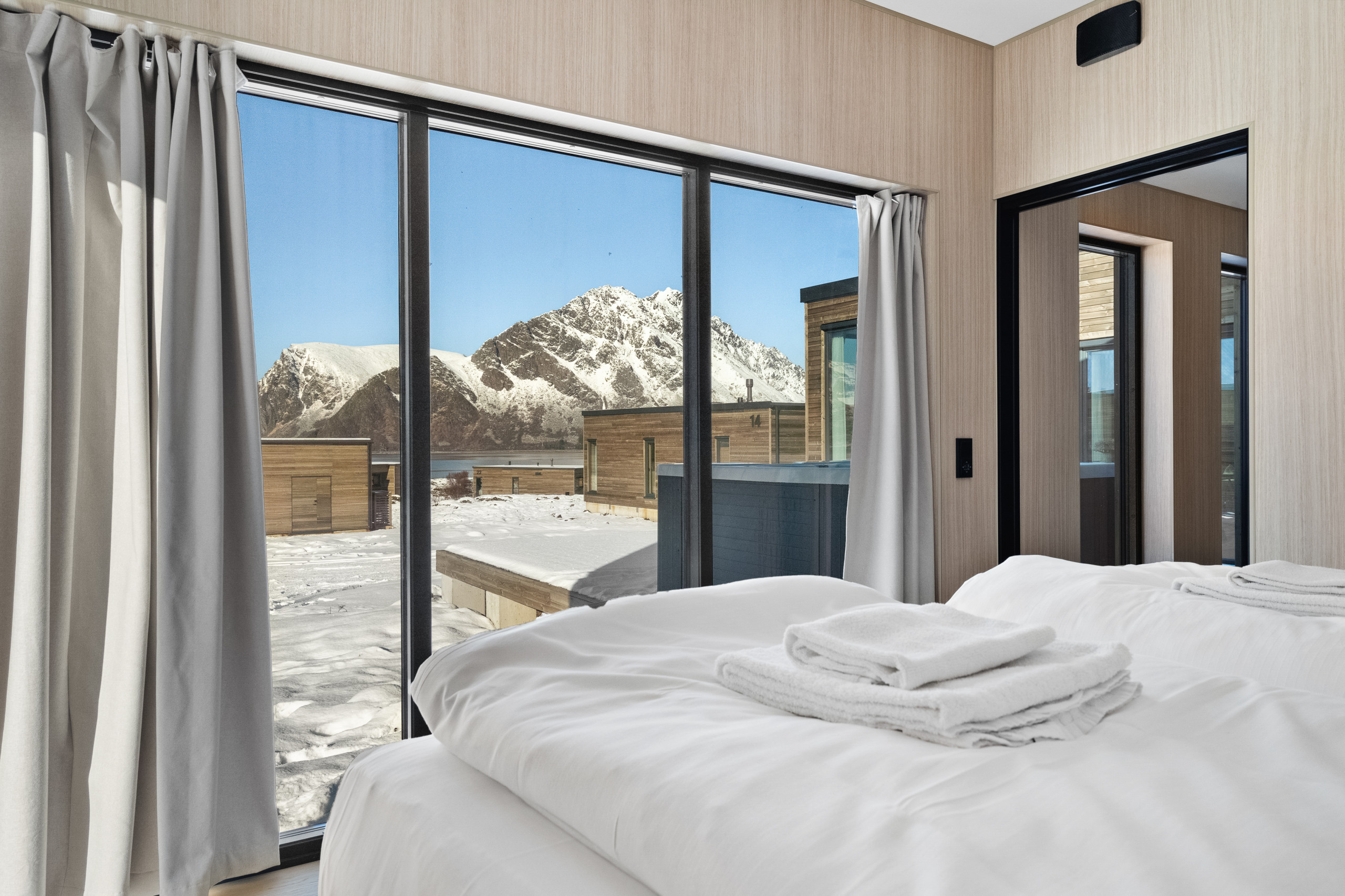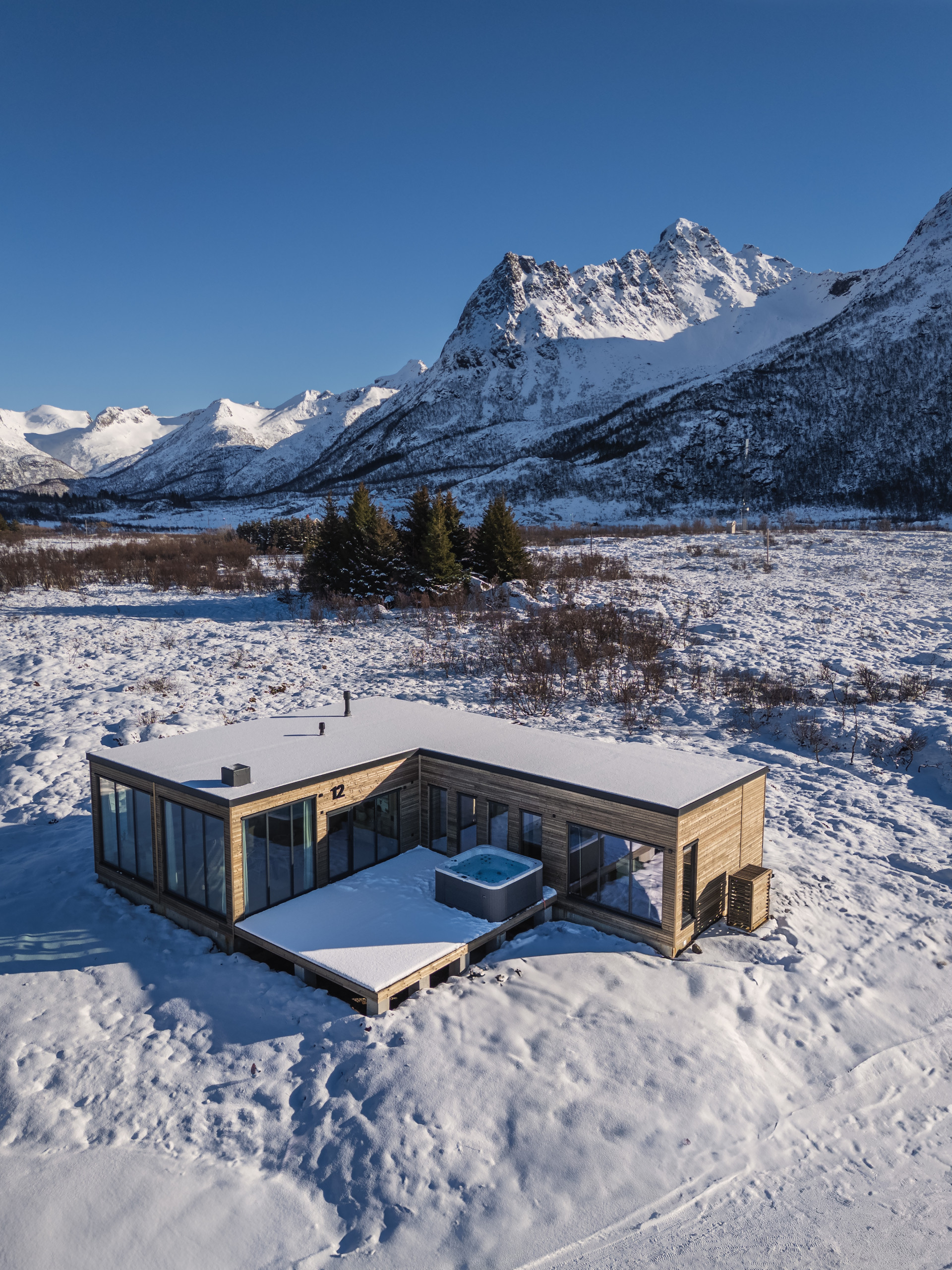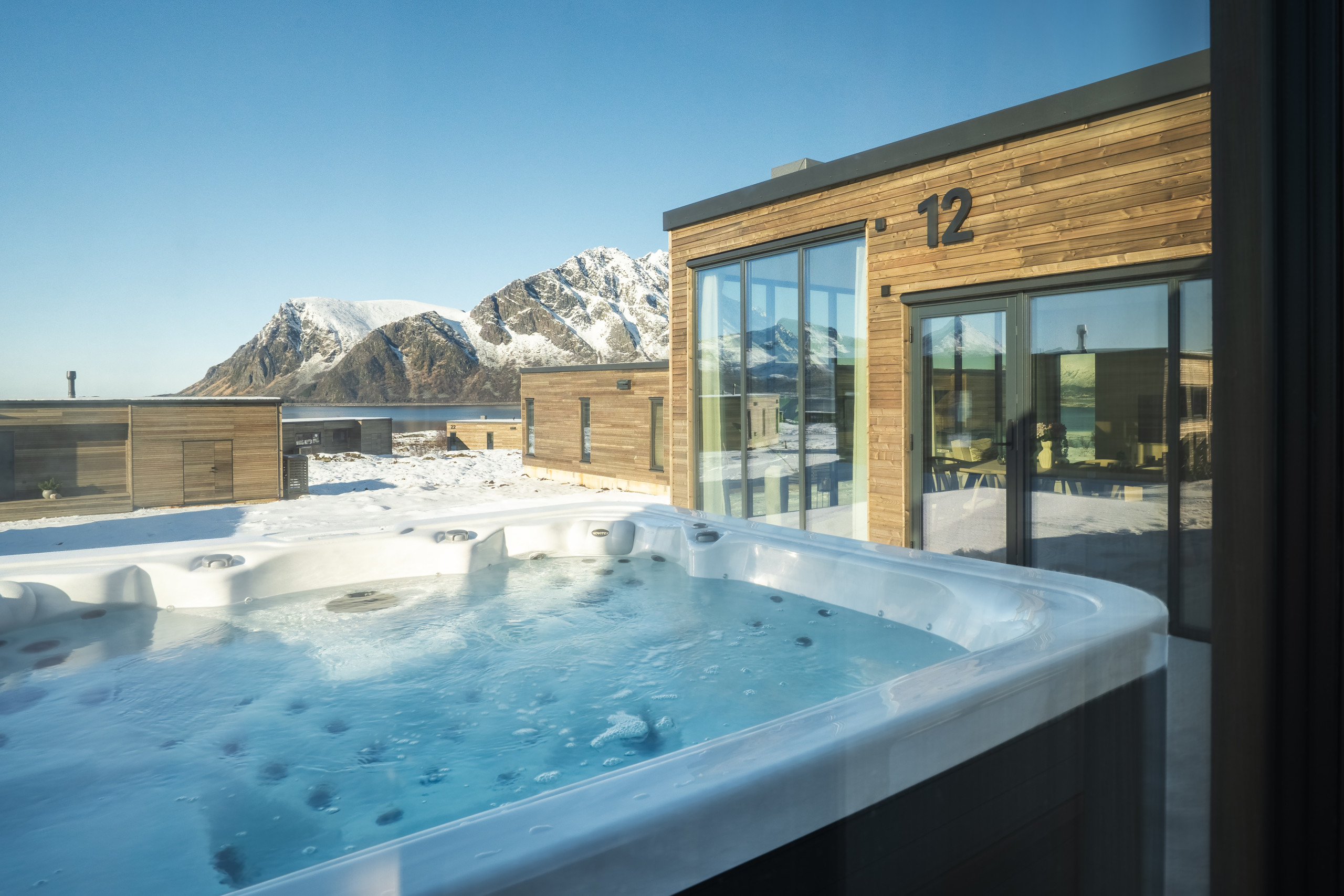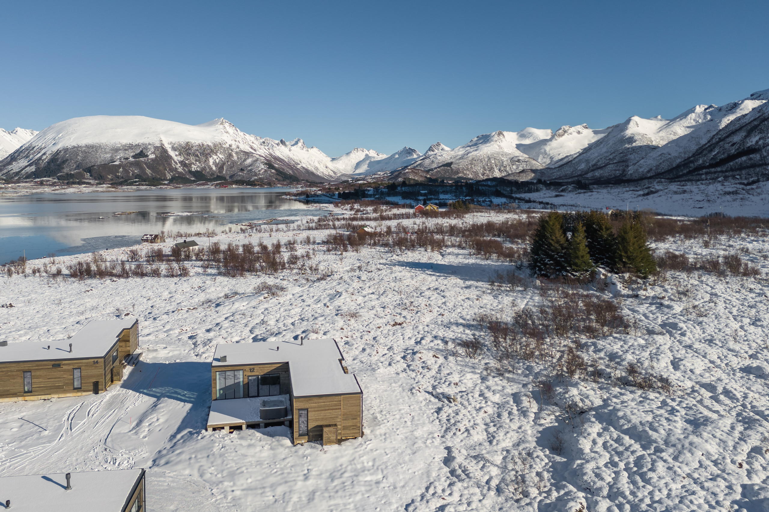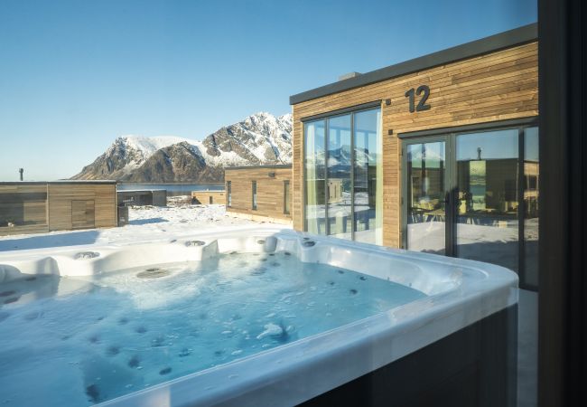 Welcome to Lofoten Arctic Lodge (no. 14) in Lofoten! A modern 103 m² lodge where comfort meets the wild beauty of Lofoten. Built to high Scandinavian standards, it features a private jacuzzi, sauna, and panoramic ocean views.
