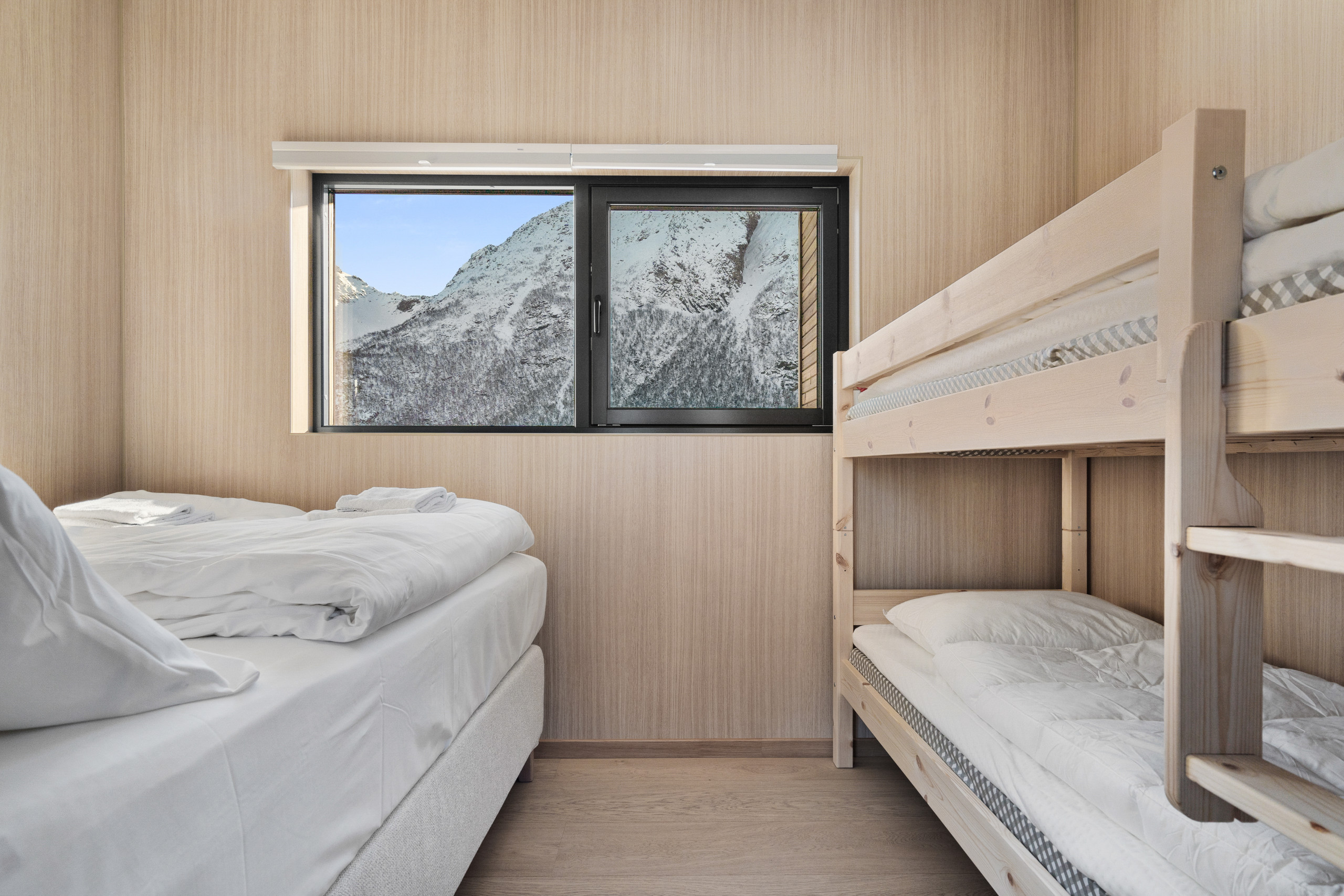 Set at the end of the road, this is one of the more private lodges in Lyngvær. Elevated in the terrain, it offers sweeping 180-degree sea views and quiet seclusion.