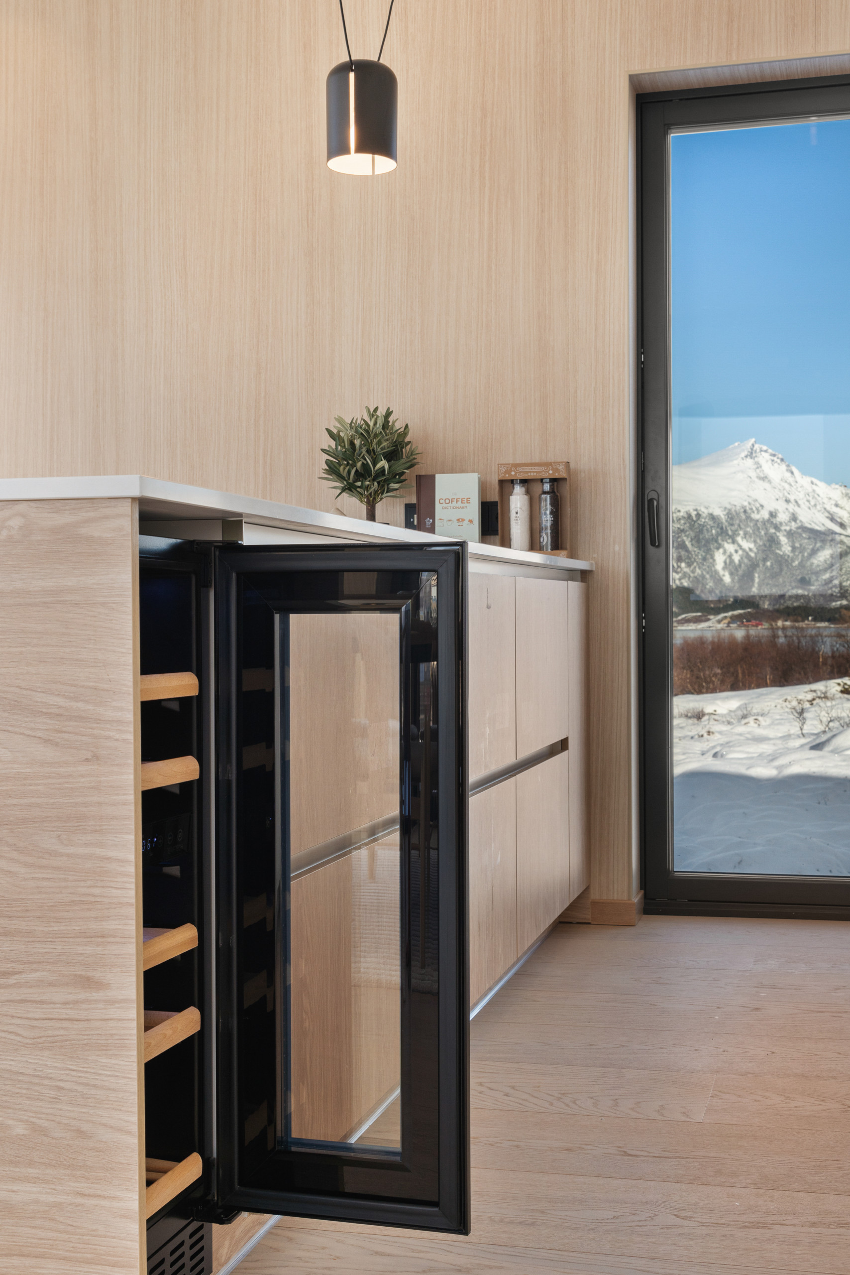 This upgraded lodge includes a larger terrace, an EV charger (included) and full floor heating for convenient, year-round stays. The lodge boasts a fully equipped American-style kitchen with top-notch appliances, including an induction cooktop, dishwasher, filter coffee machine, and all the kitchenware you'll need to prepare delicious meals. Enjoy the convenience of a washing machine and dryer, making your stay both comfortable and practical.