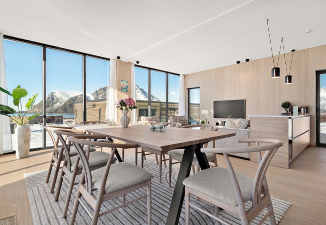 Welcome to our luxury Lodge in Lofoten, where comfort meets the wild beauty of Lofoten! Here you can enjoy a wide panoramic view of the midnight sun (never) setting in the ocean and the northern lights dancing over dramatic mountains...
