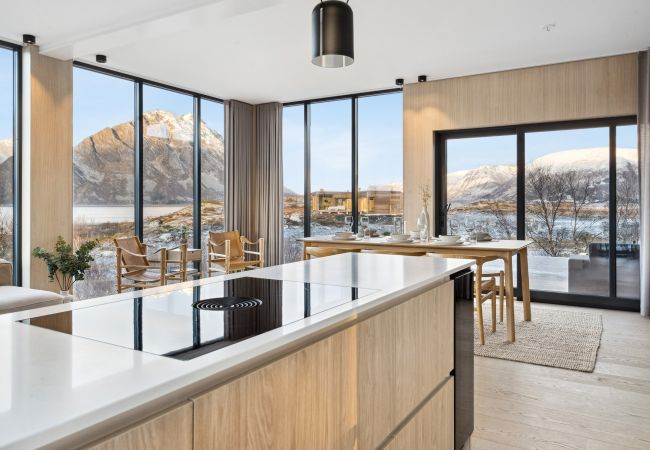 Welcome to our luxury Lodge in Lofoten, where comfort meets the wild beauty of Lofoten! Here you can enjoy a wide panoramic view of the midnight sun (never) setting in the ocean and the in the northern lights dancing over dramatic mountains...