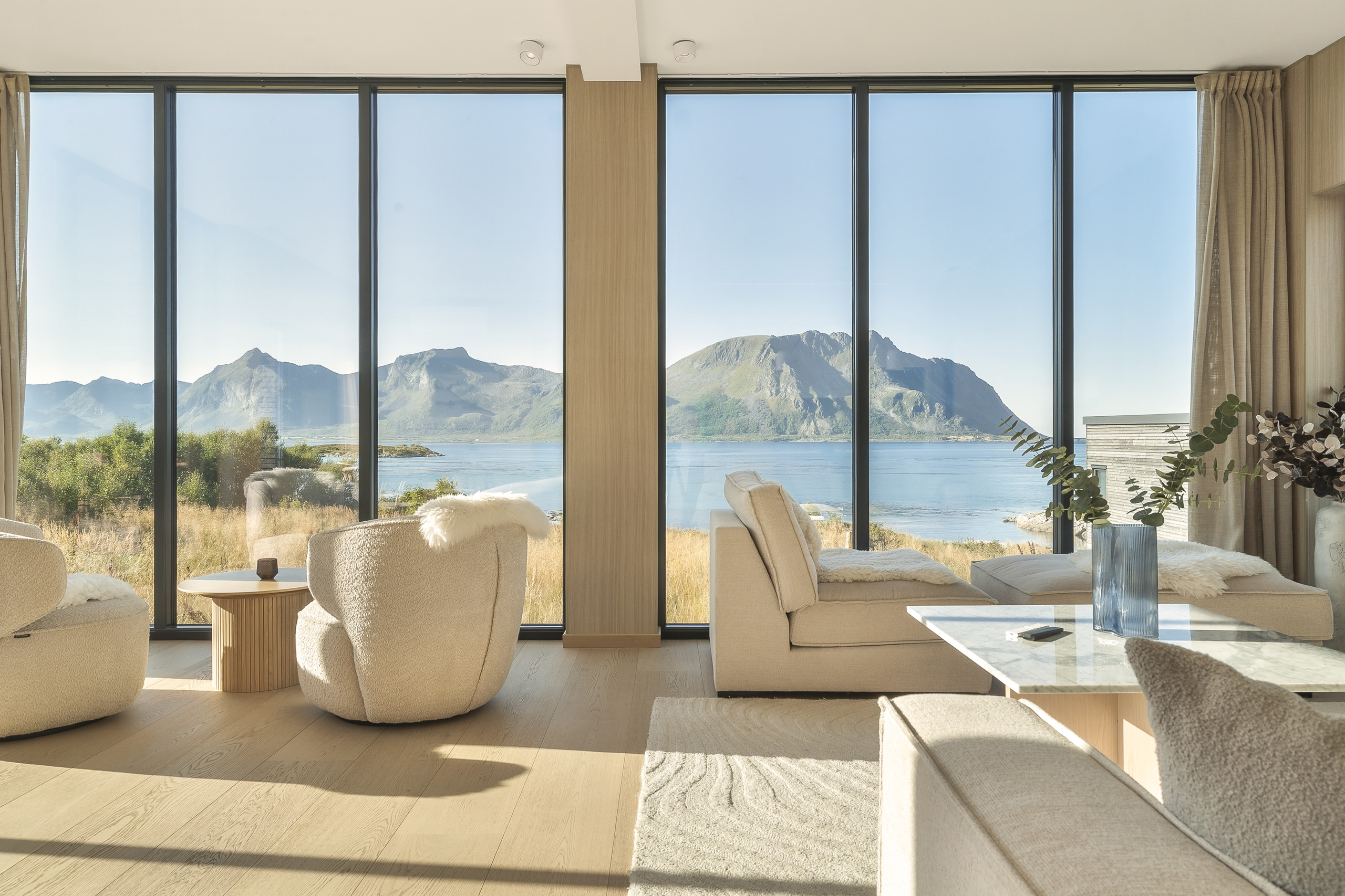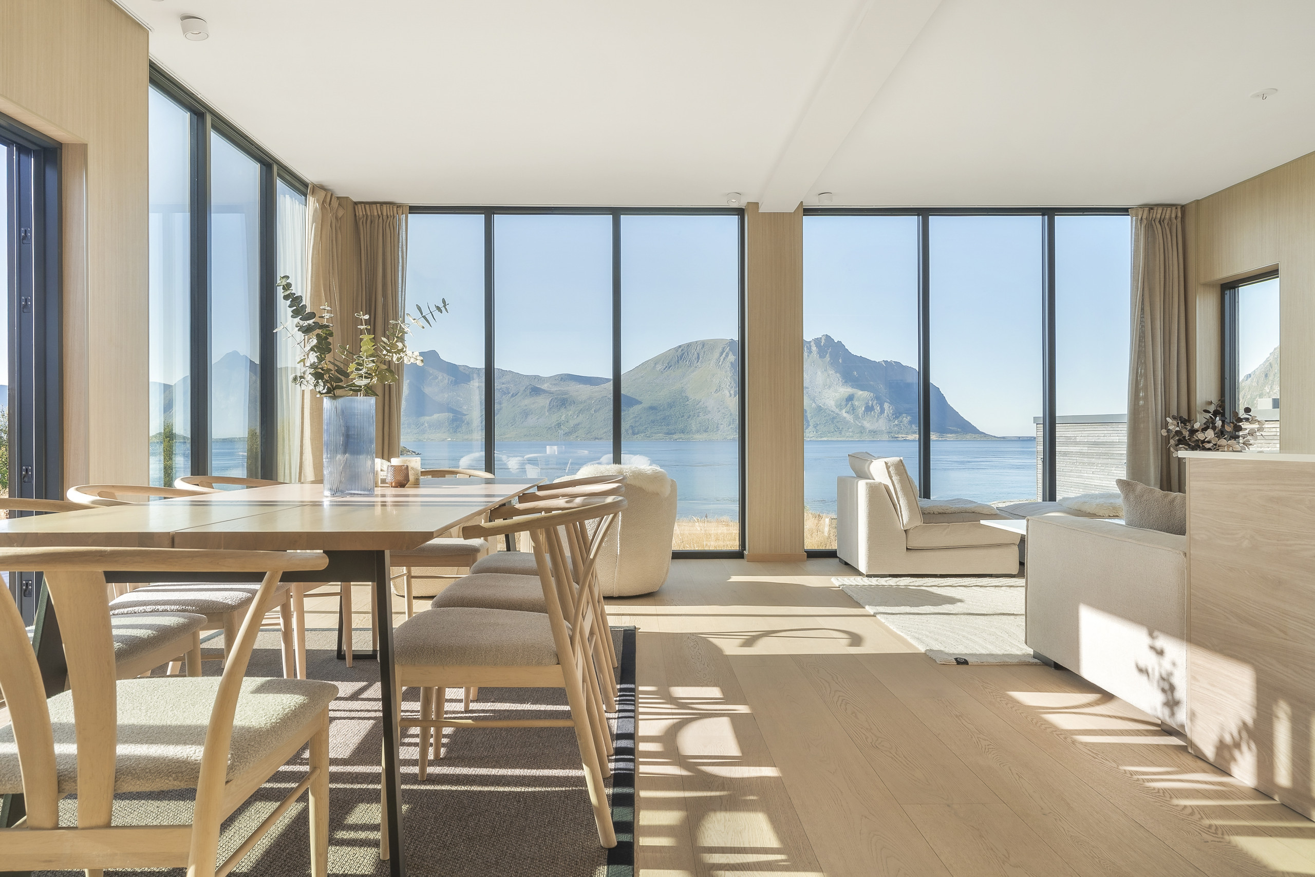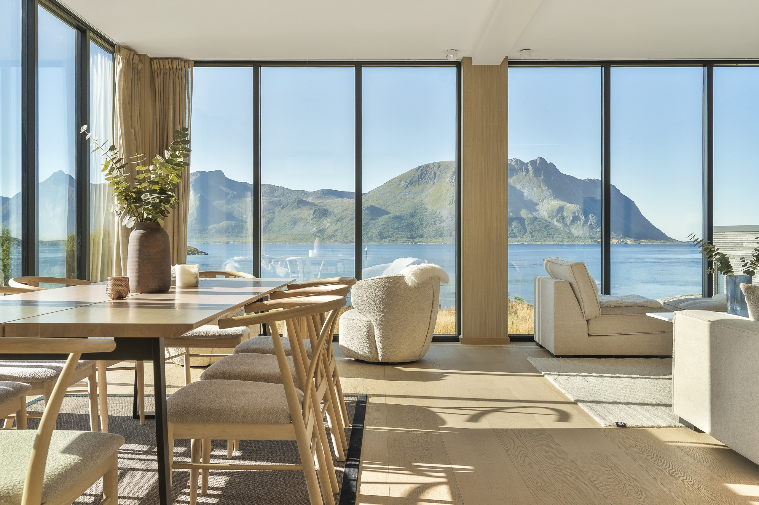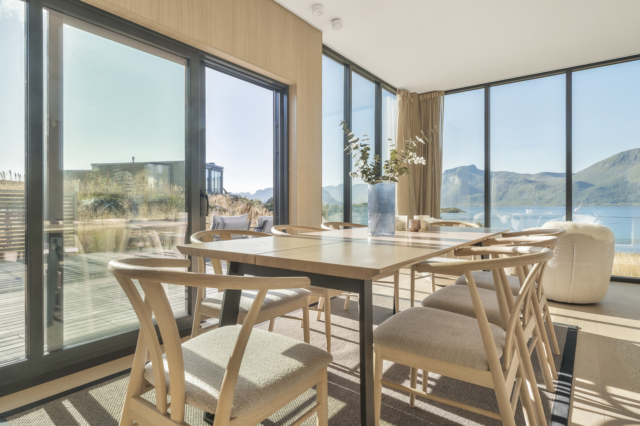 Set at the end of the road, this is one of the more private lodges in Lyngvær. Elevated in the terrain, it offers sweeping 180-degree sea views and quiet seclusion.