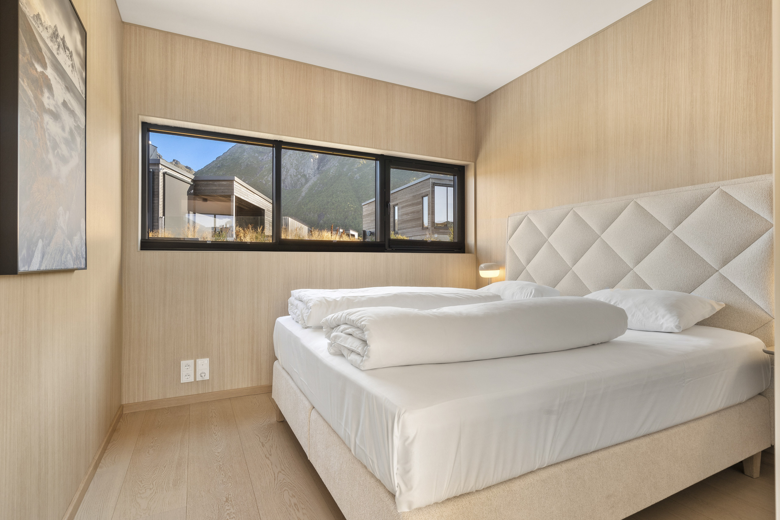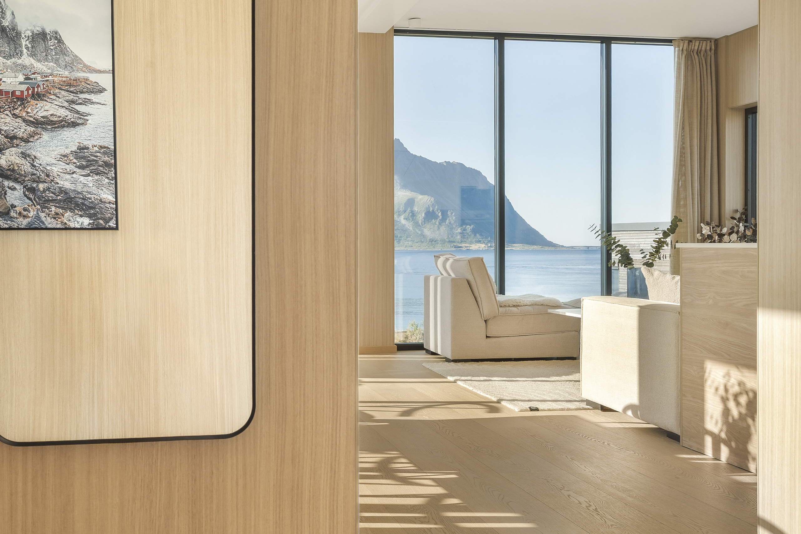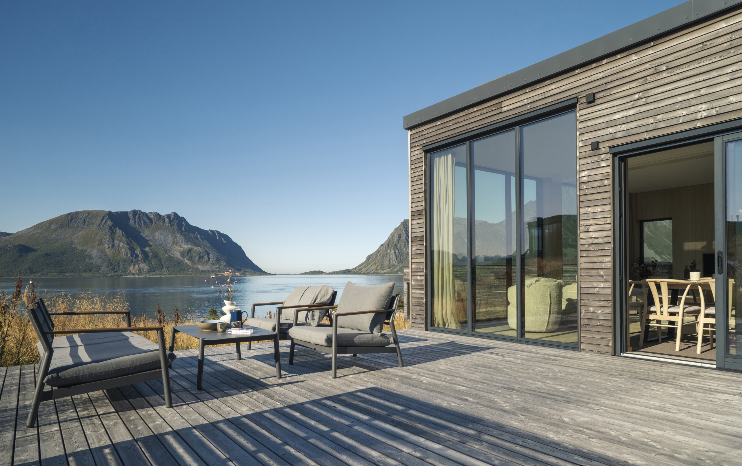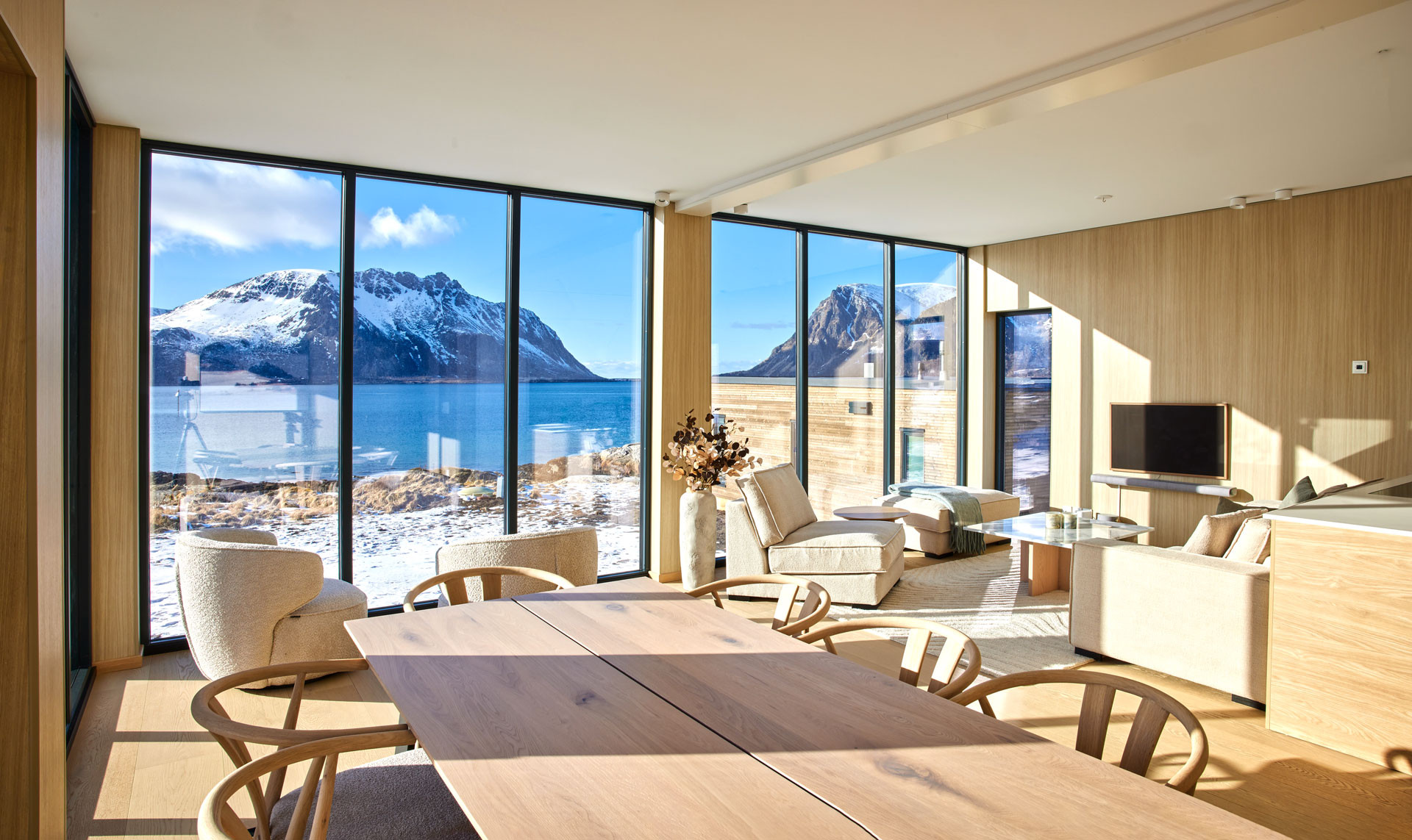 Set at the end of the road, this is one of the more private lodges in Lyngvær. Elevated in the terrain, it offers sweeping 180-degree sea views and quiet seclusion.