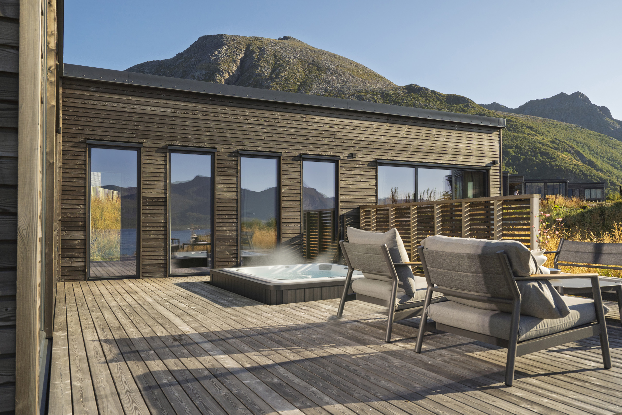Welcome to Lofoten Arctic Lodge (no. 14) in Lofoten! A modern 103 m² lodge where comfort meets the wild beauty of Lofoten. Built to high Scandinavian standards, it features a private jacuzzi, sauna, and panoramic ocean views.