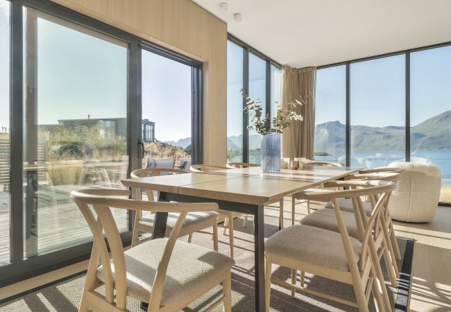 Welcome to our luxury Lodge in Lofoten, where comfort meets the wild beauty of Lofoten! Here you can enjoy a wide panoramic view of the midnight sun (never) setting in the ocean and the in the northern lights dancing over dramatic mountains...