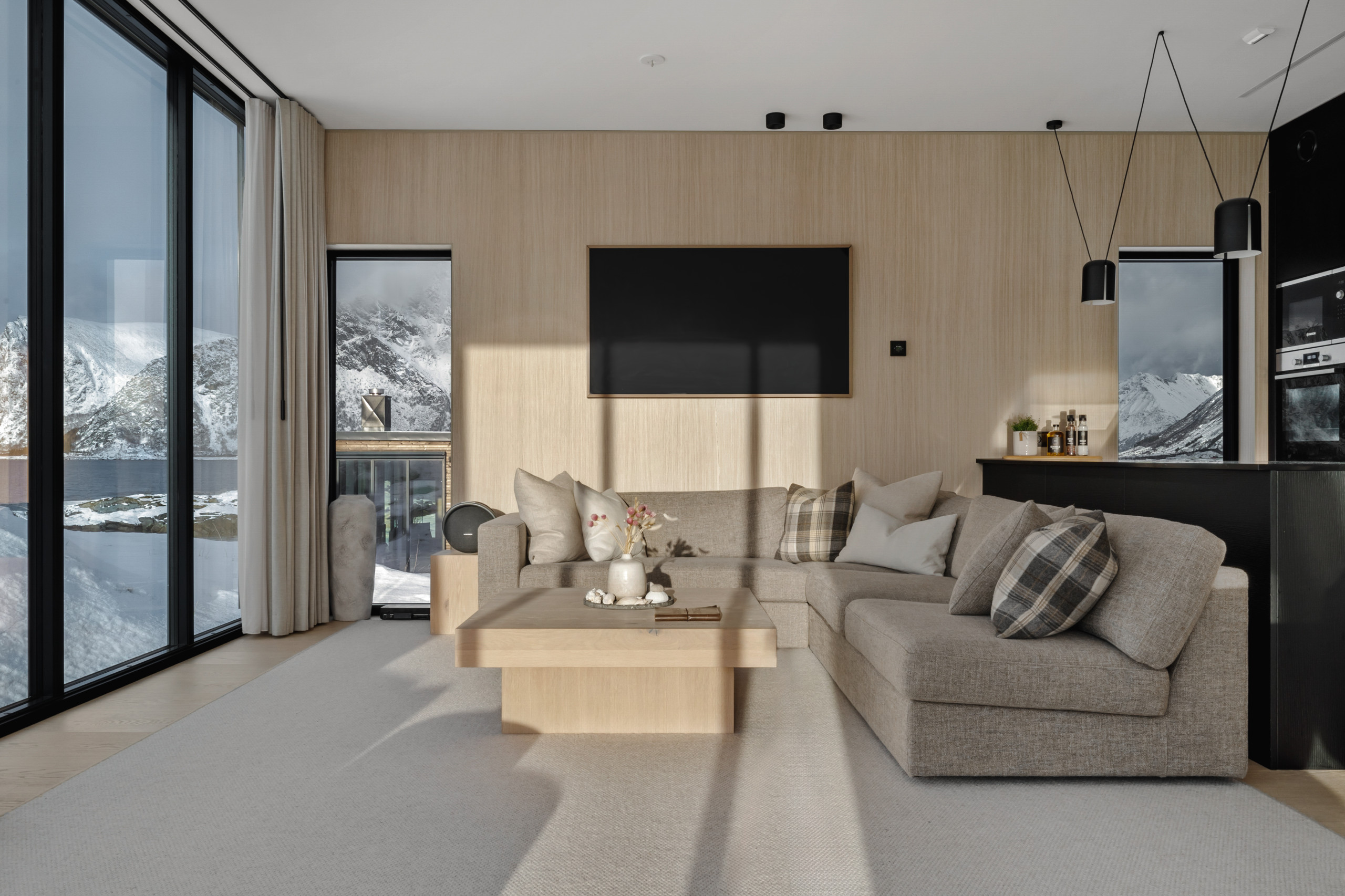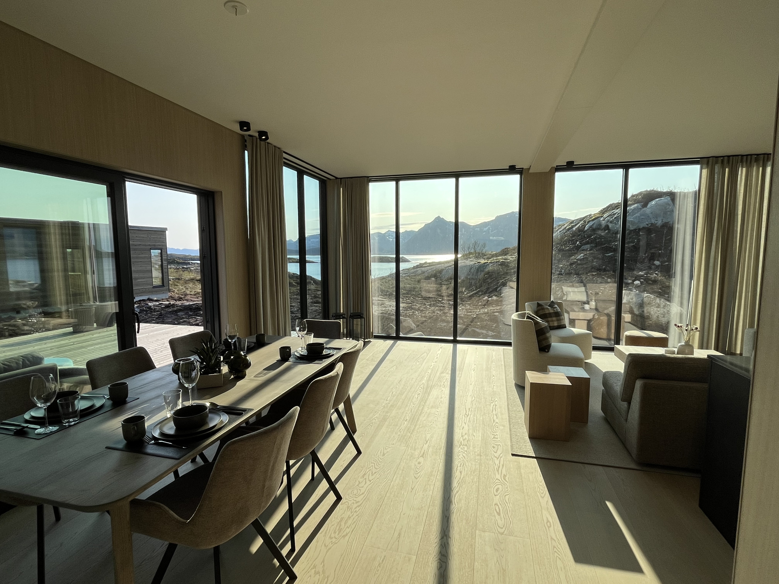 Spacious and thoughtfully designed with two bathrooms, both with big showers, it accommodates up to 8 guests and blends modern comfort with the raw beauty of Lofoten. Whether you’re chasing the Northern Lights, exploring fjords, playing a round of golf at Lofoten Links under the midnight sun, or simply unwinding in quiet comfort — this is your base for it all.