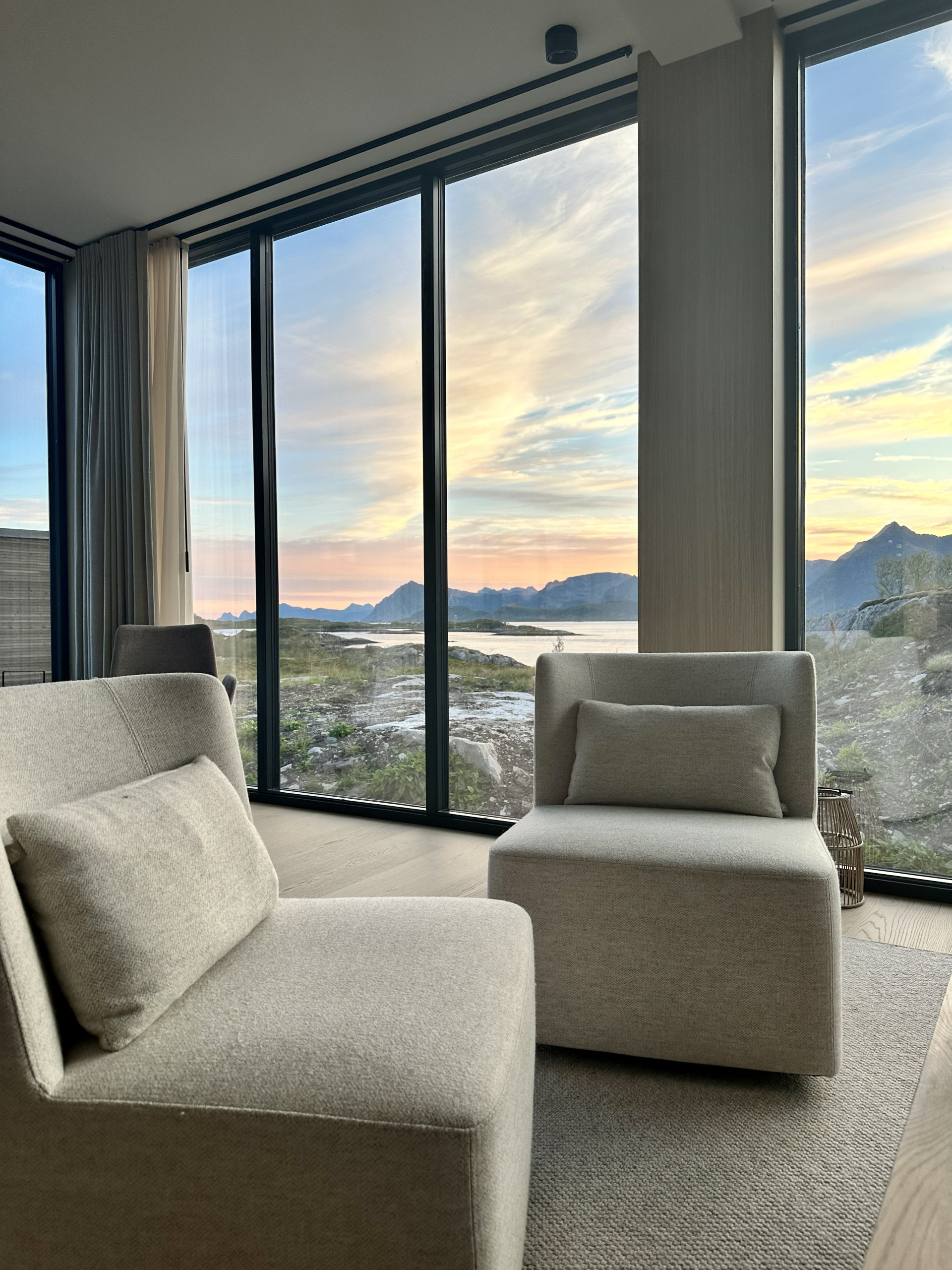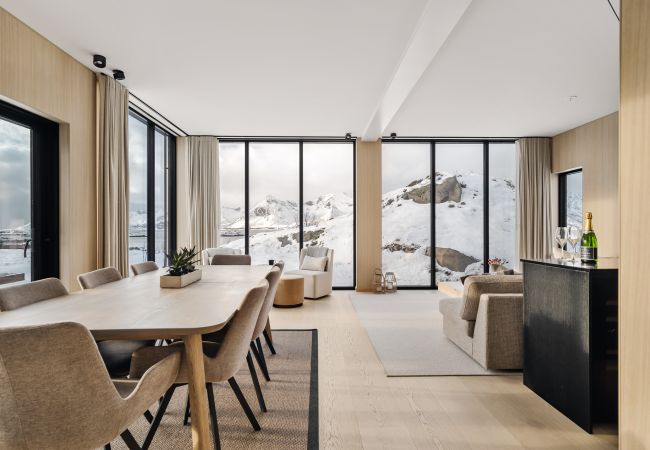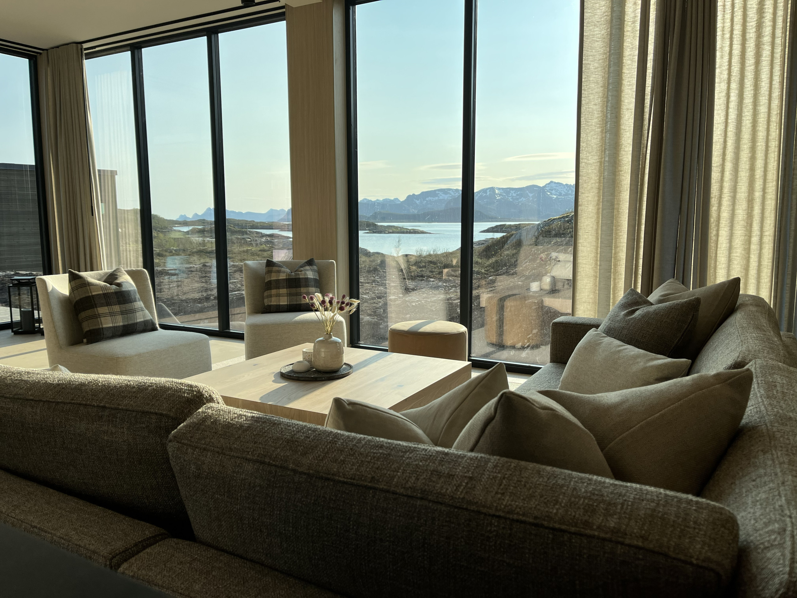Welcome to our luxury Lodge in Lofoten, where comfort meets the wild beauty of Lofoten! Here you can enjoy a wide panoramic view of the midnight sun (never) setting in the ocean and the in the northern lights dancing over dramatic mountains...