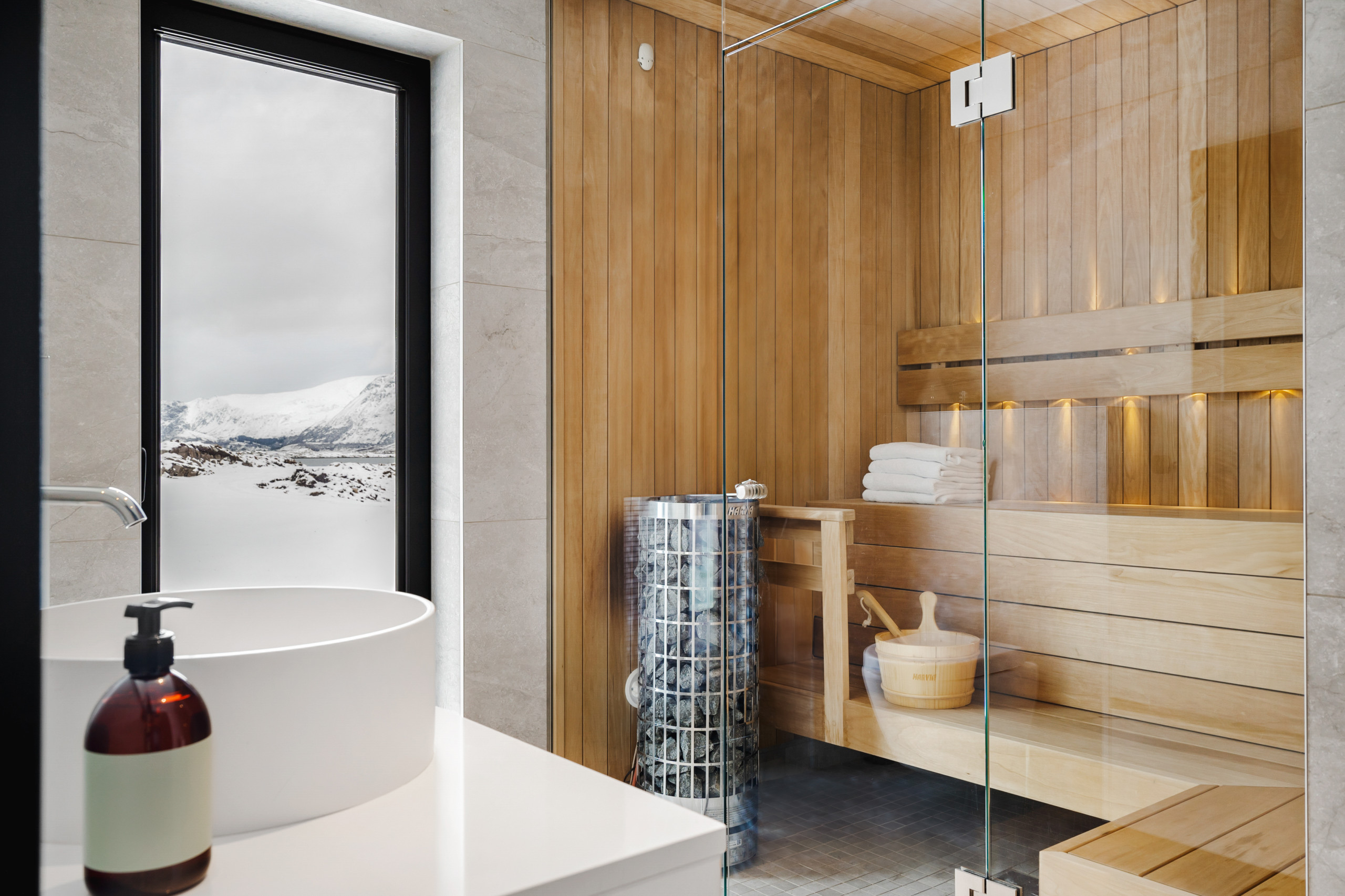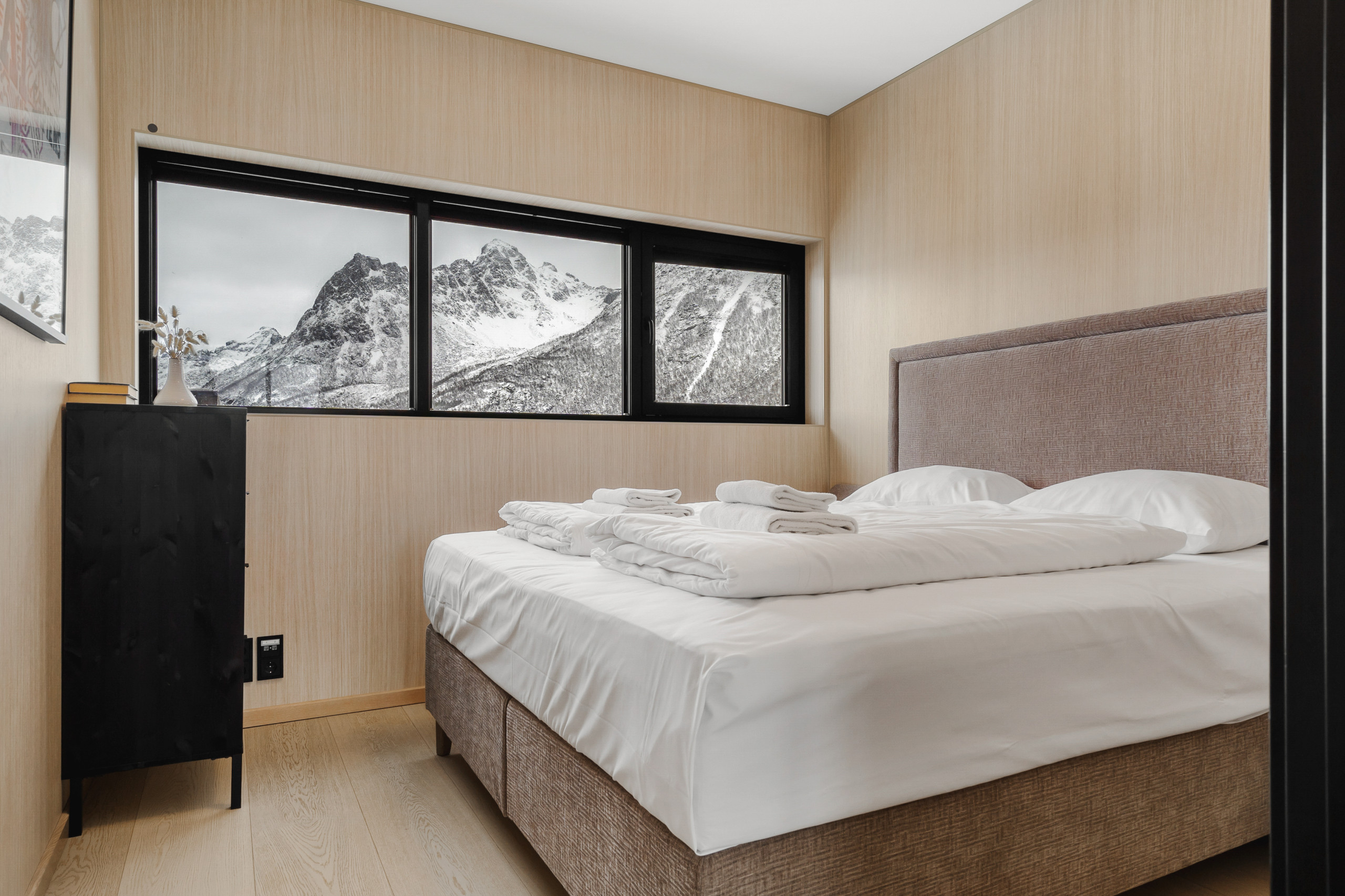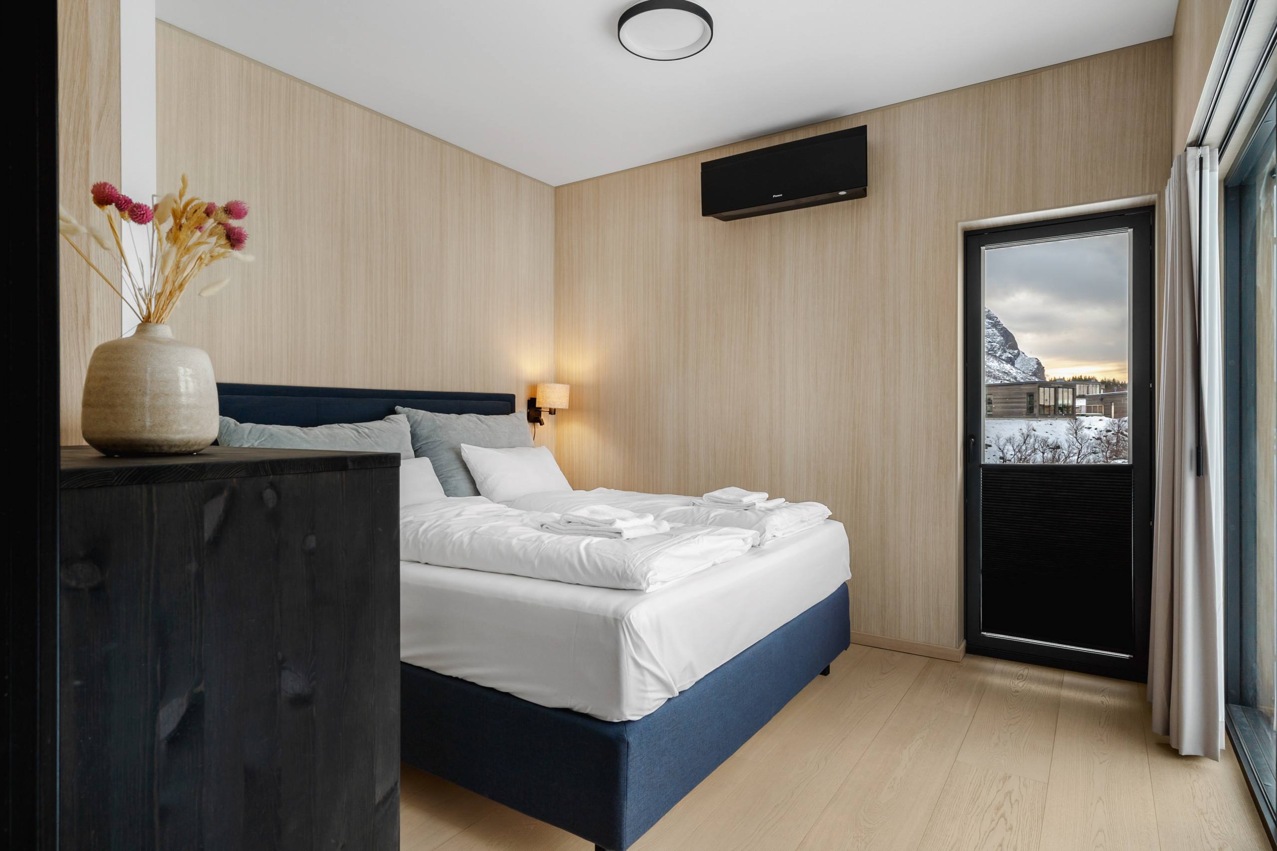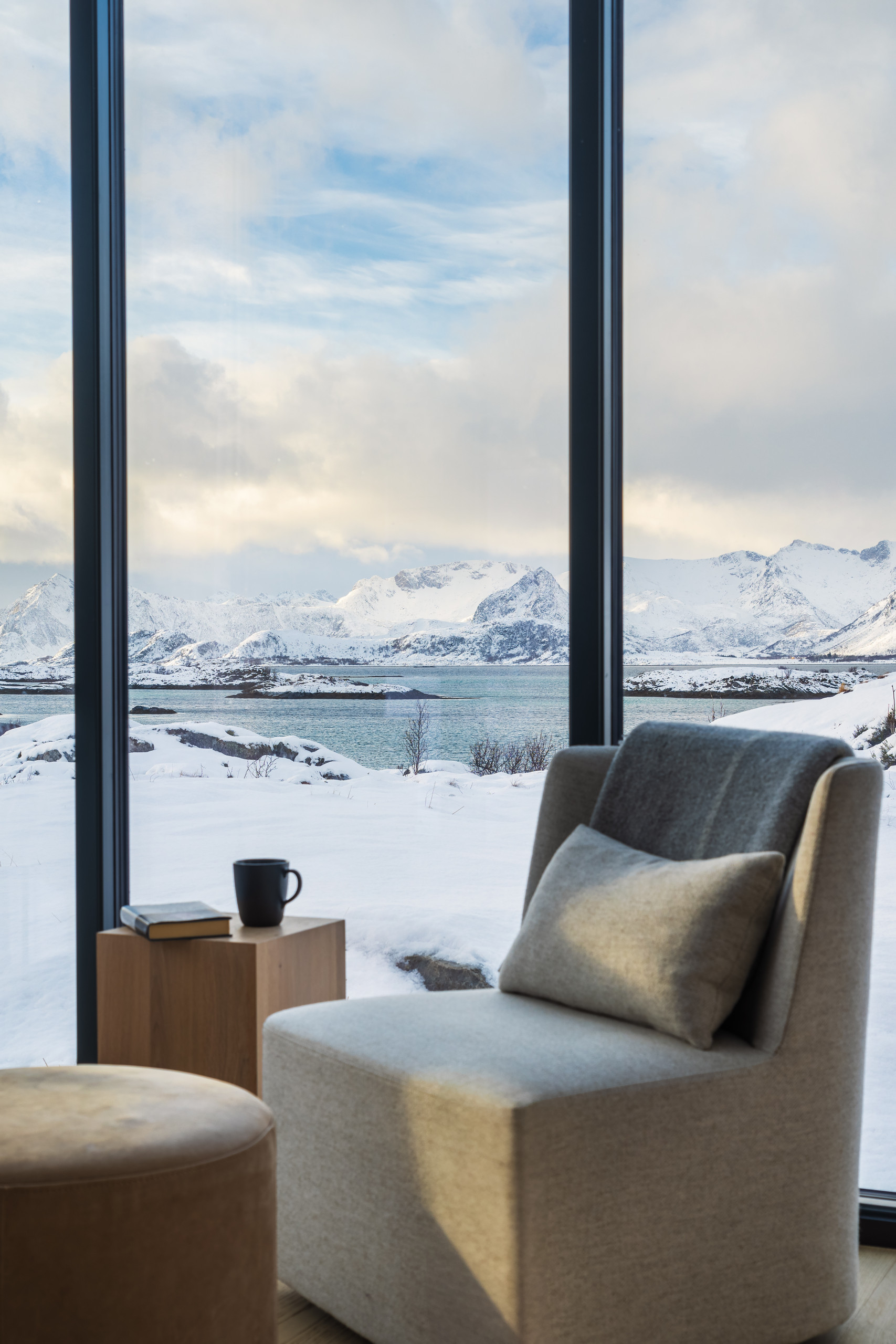Set at the end of the road, this is one of the more private lodges in Lyngvær. Elevated in the terrain, it offers sweeping 180-degree sea views and quiet seclusion.