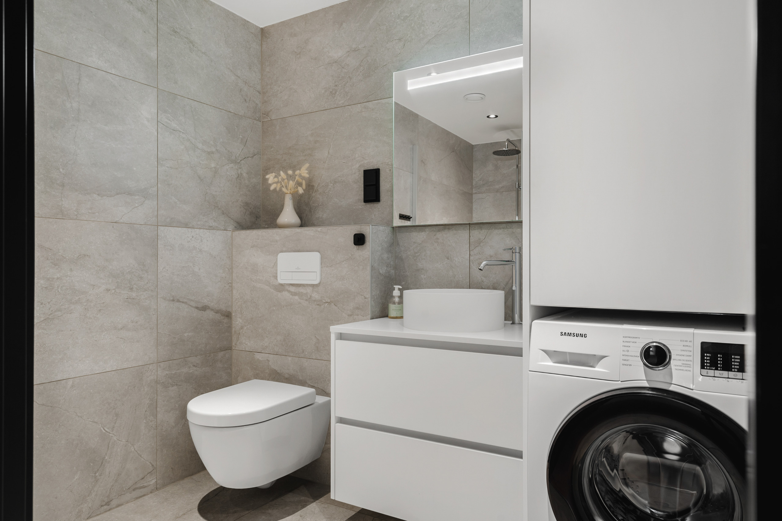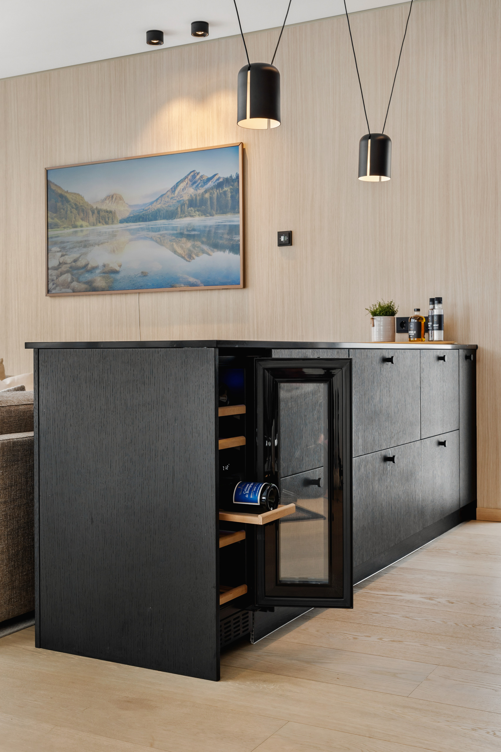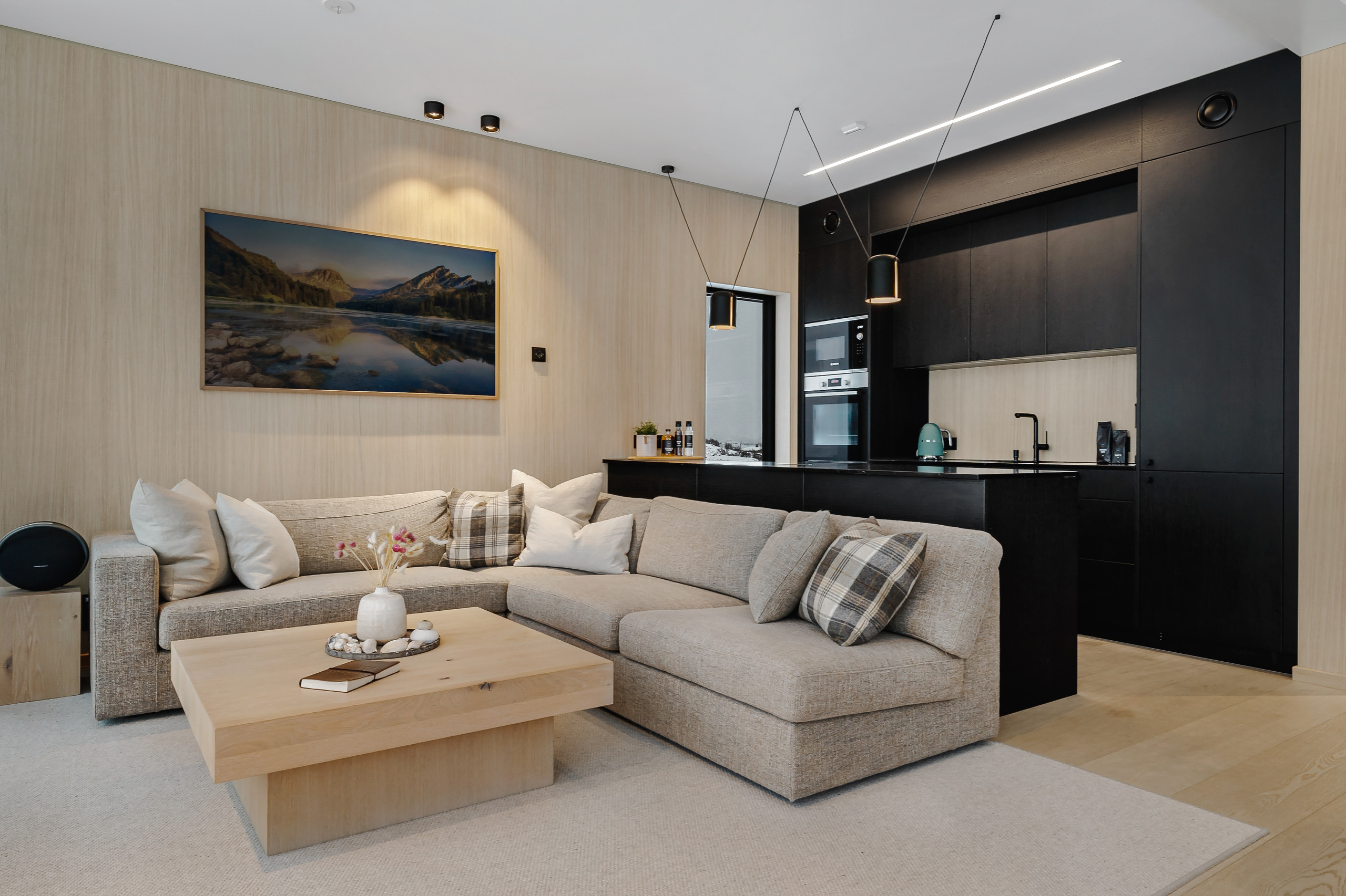 This upgraded lodge includes a larger terrace, an EV charger (included) and full floor heating for convenient, year-round stays. The lodge boasts a fully equipped American-style kitchen with top-notch appliances, including an induction cooktop, dishwasher, filter coffee machine, and all the kitchenware you'll need to prepare delicious meals. Enjoy the convenience of a washing machine and dryer, making your stay both comfortable and practical.
