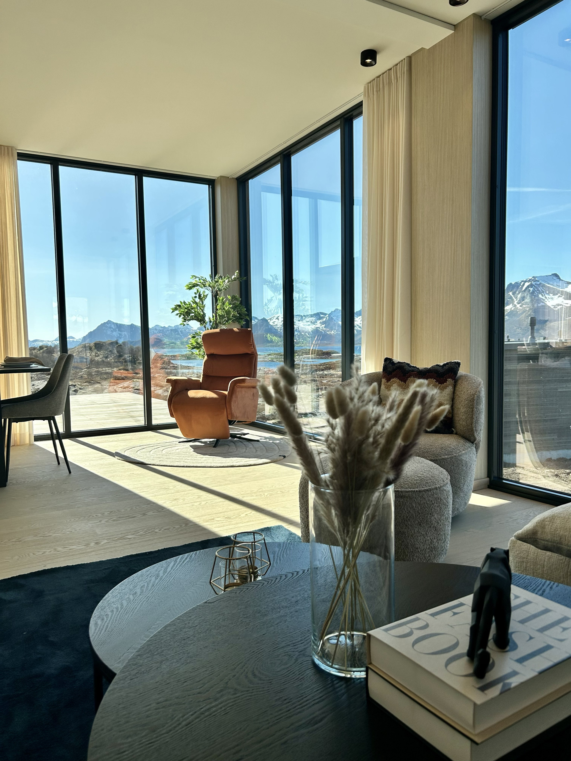 Spacious and thoughtfully designed with two bathrooms, both with big showers, it accommodates up to 8 guests and blends modern comfort with the raw beauty of Lofoten. Whether you’re chasing the Northern Lights, exploring fjords, playing a round of golf at Lofoten Links under the midnight sun, or simply unwinding in quiet comfort — this is your base for it all.