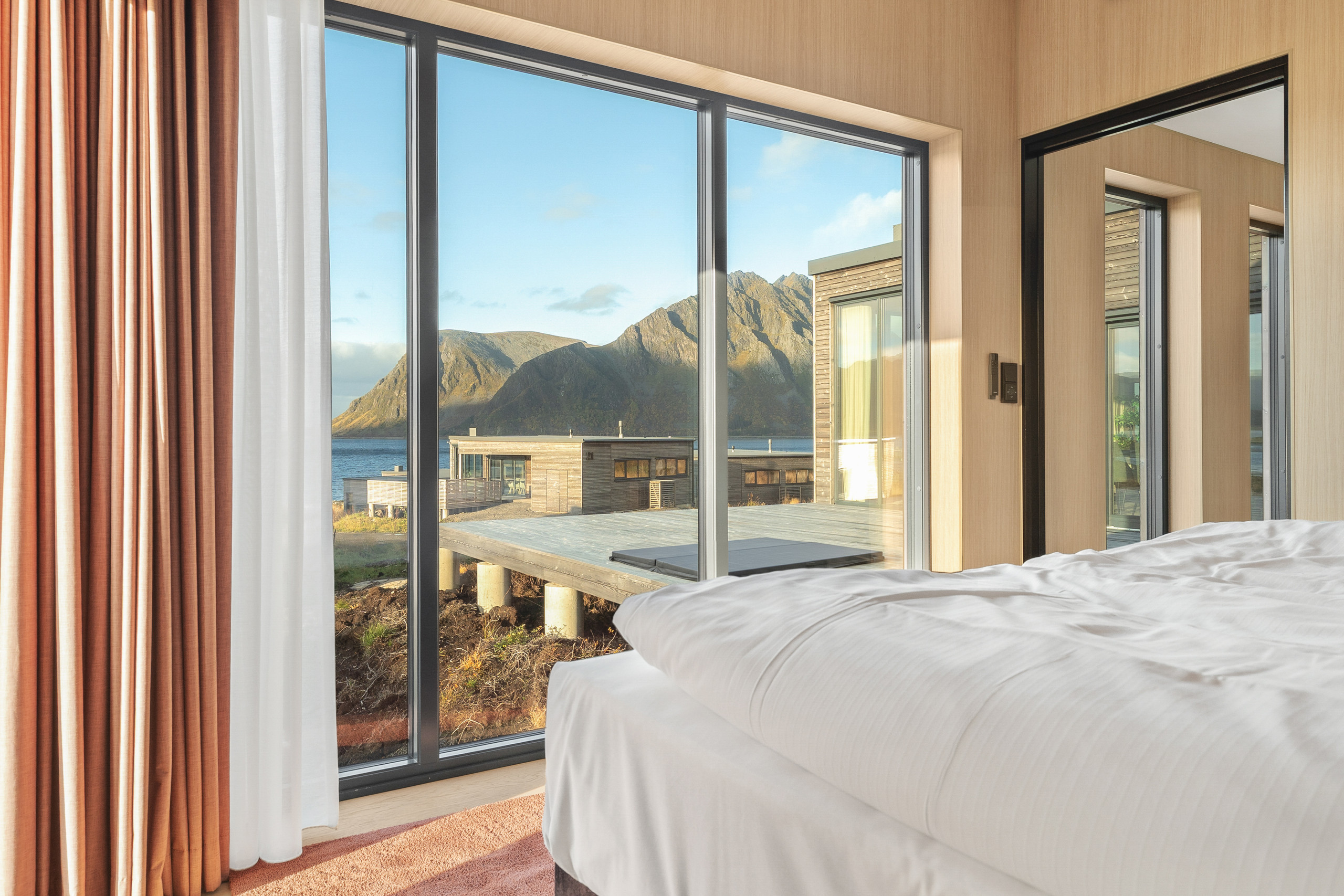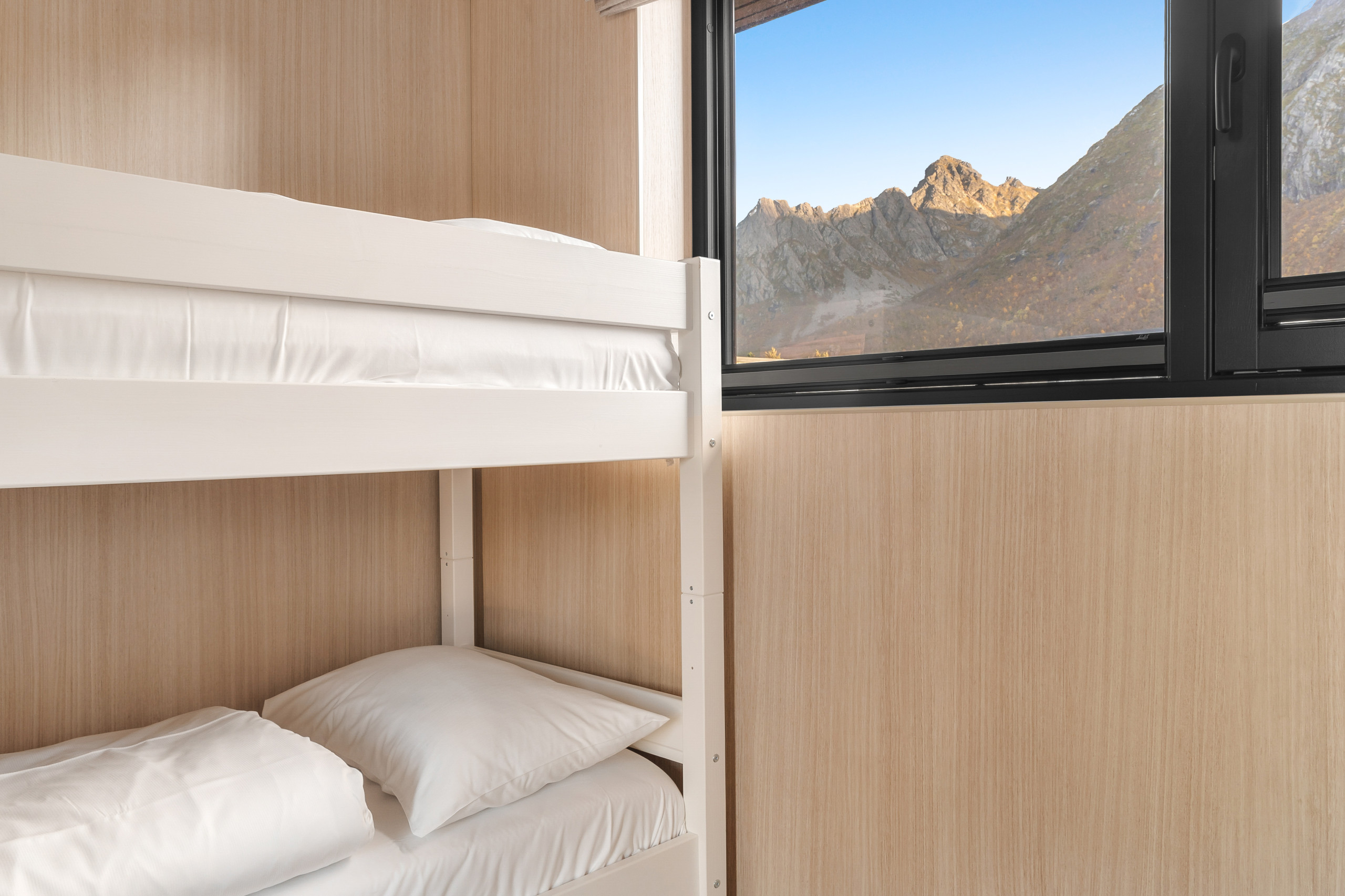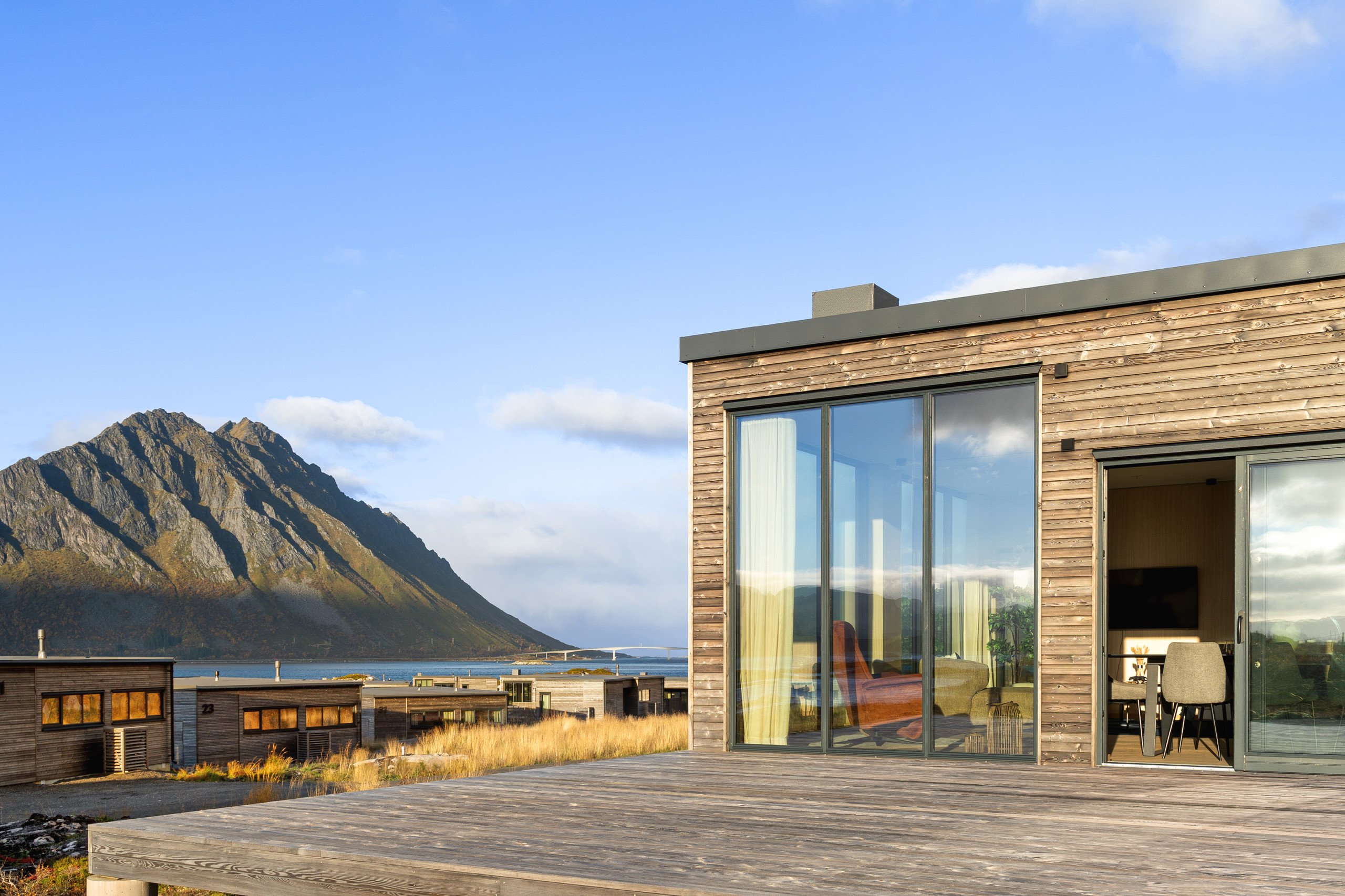 Set at the end of the road, this is one of the more private lodges in Lyngvær. Elevated in the terrain, it offers sweeping 180-degree sea views and quiet seclusion.