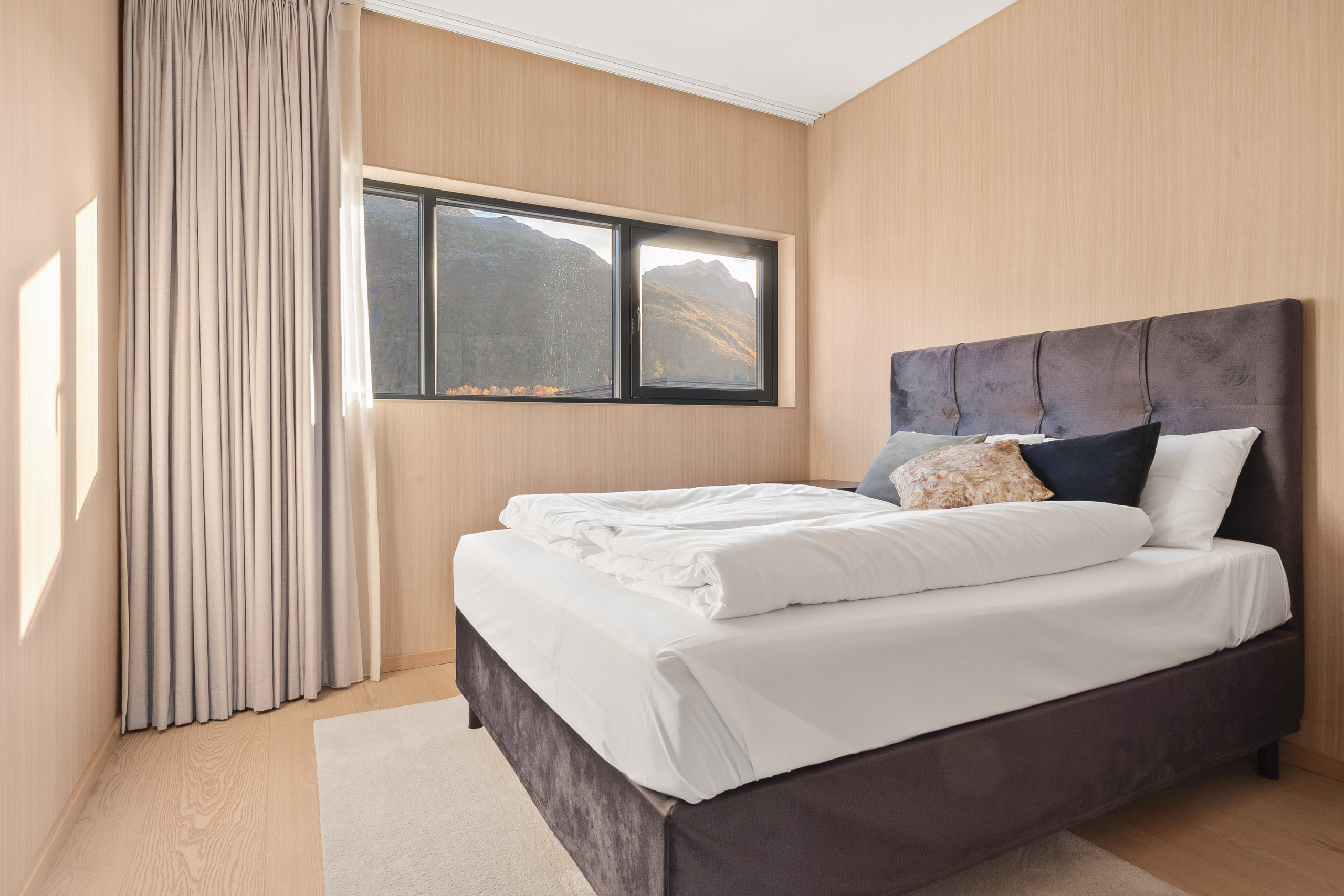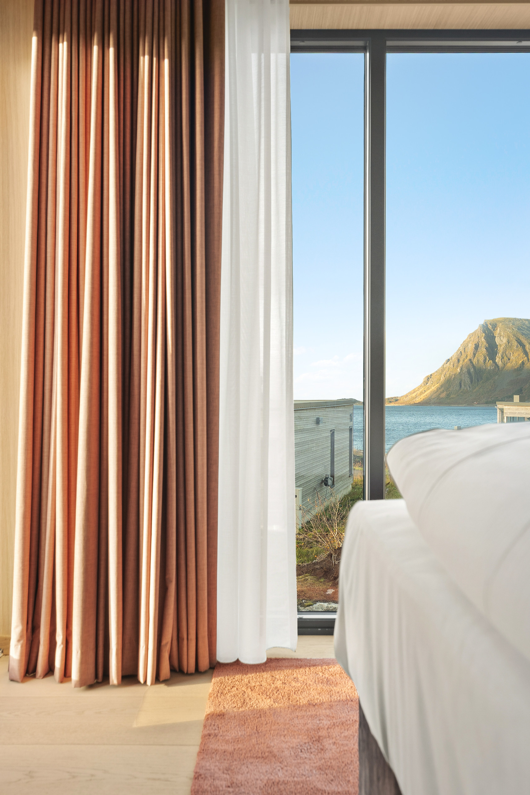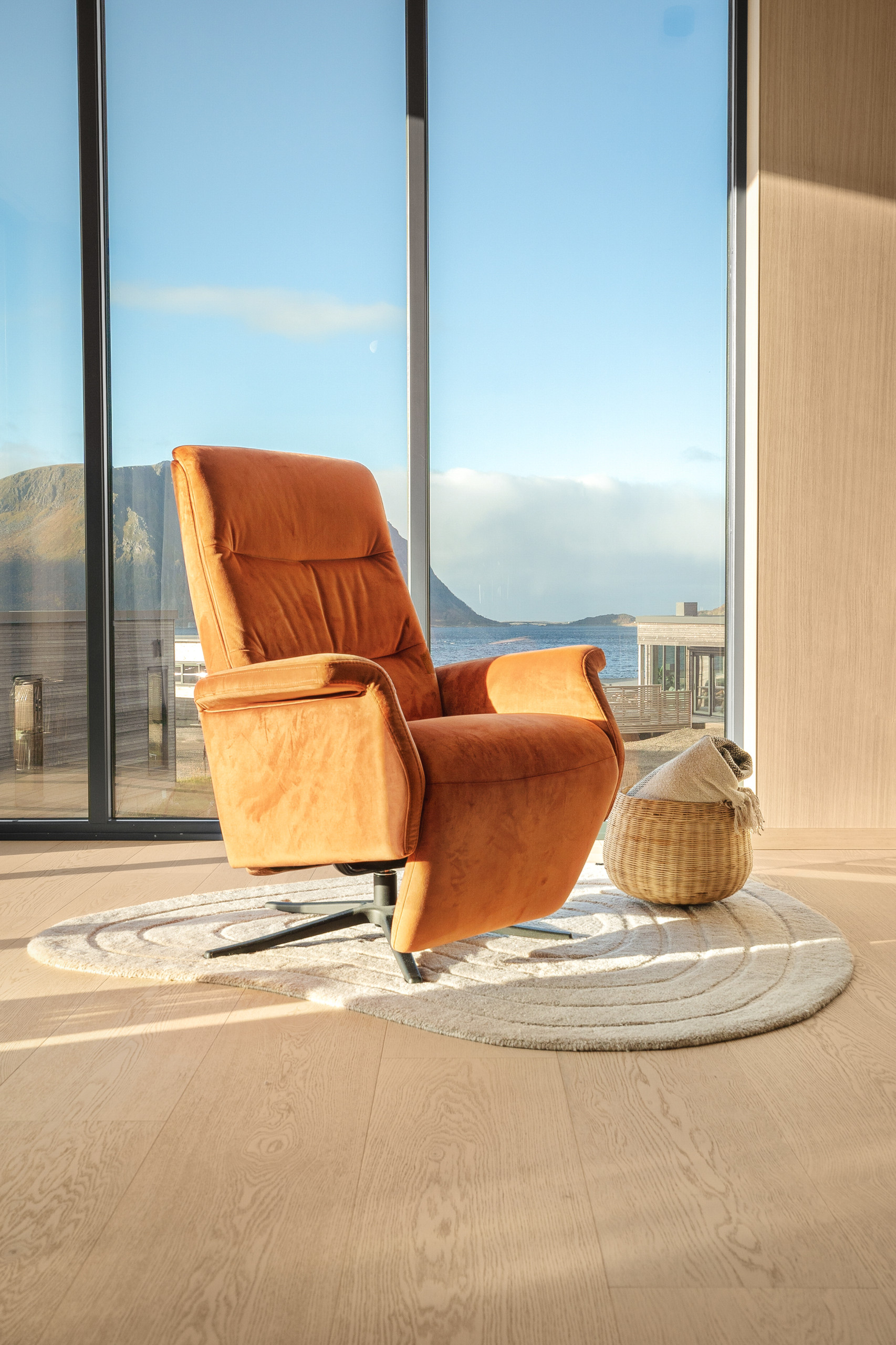 Set at the end of the road, this is one of the more private lodges in Lyngvær. Elevated in the terrain, it offers sweeping 180-degree sea views and quiet seclusion.