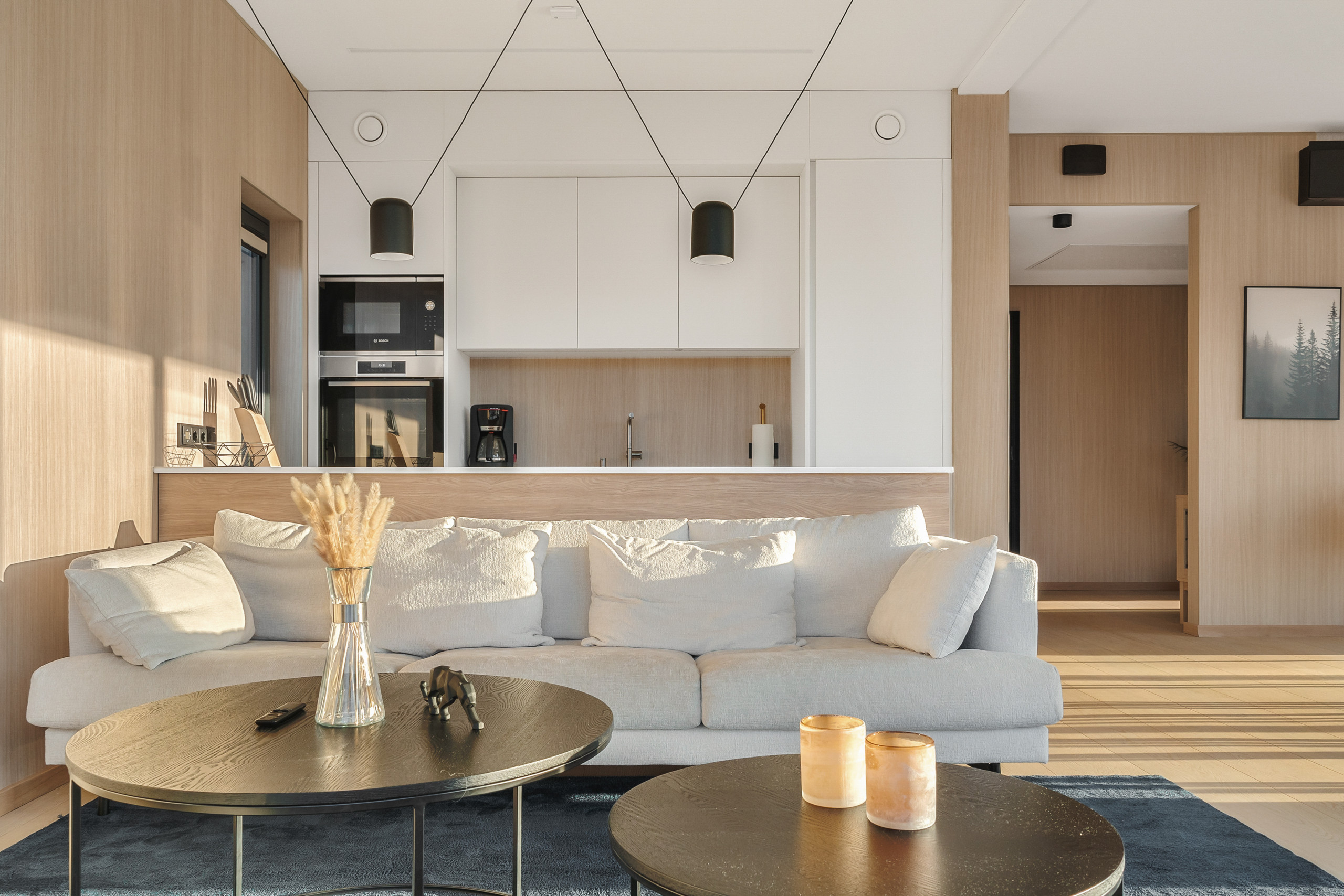 This upgraded lodge includes a larger terrace, an EV charger (included) and full floor heating for convenient, year-round stays. The lodge boasts a fully equipped American-style kitchen with top-notch appliances, including an induction cooktop, dishwasher, filter coffee machine, and all the kitchenware you'll need to prepare delicious meals. Enjoy the convenience of a washing machine and dryer, making your stay both comfortable and practical.